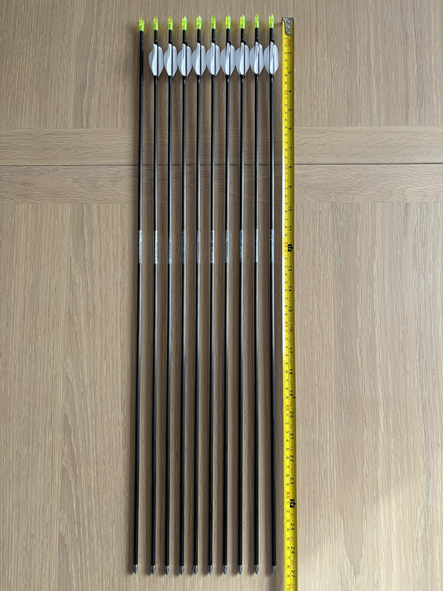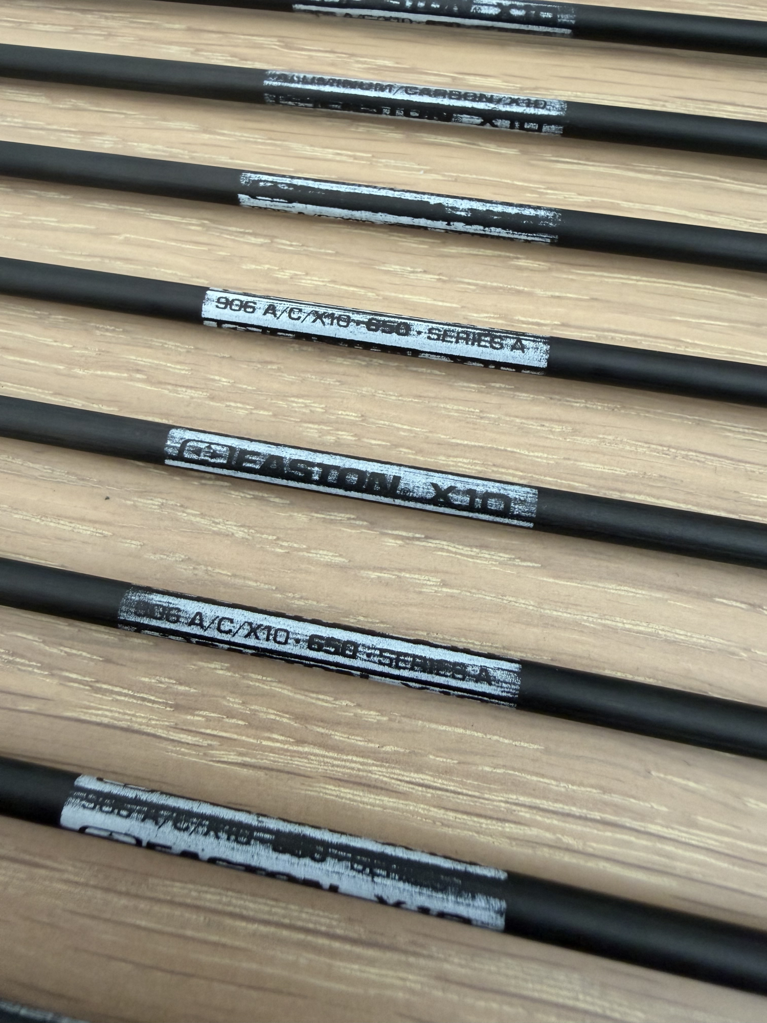10 Easton X10 with 100grn Easton tungsten points 650 spine 26 11/16"