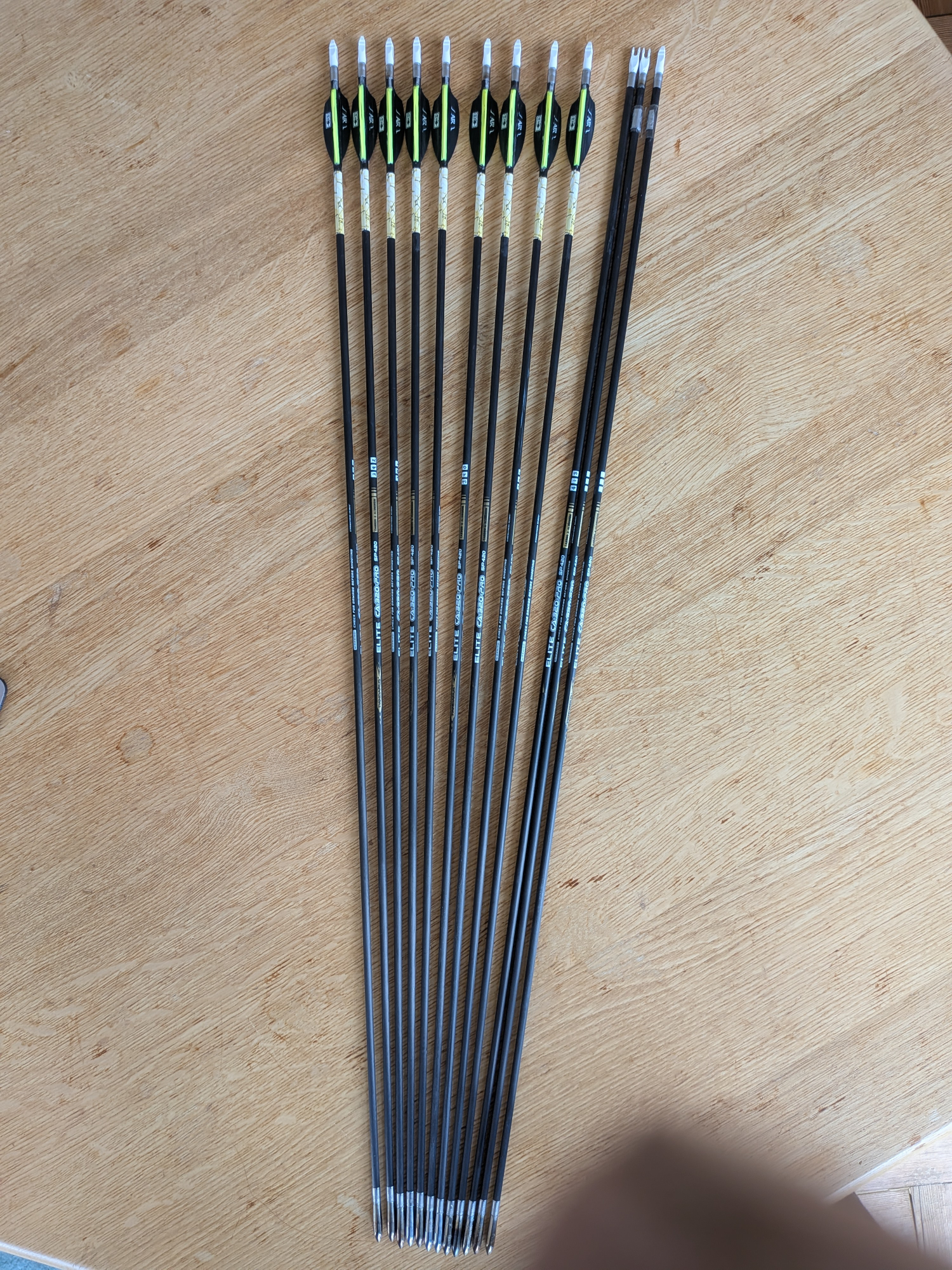 12 Pandarus Elite CA-320-Pro carbon/aluminium 3.2mm arrows. 9 x fully fletched and 3 bareshaft.
