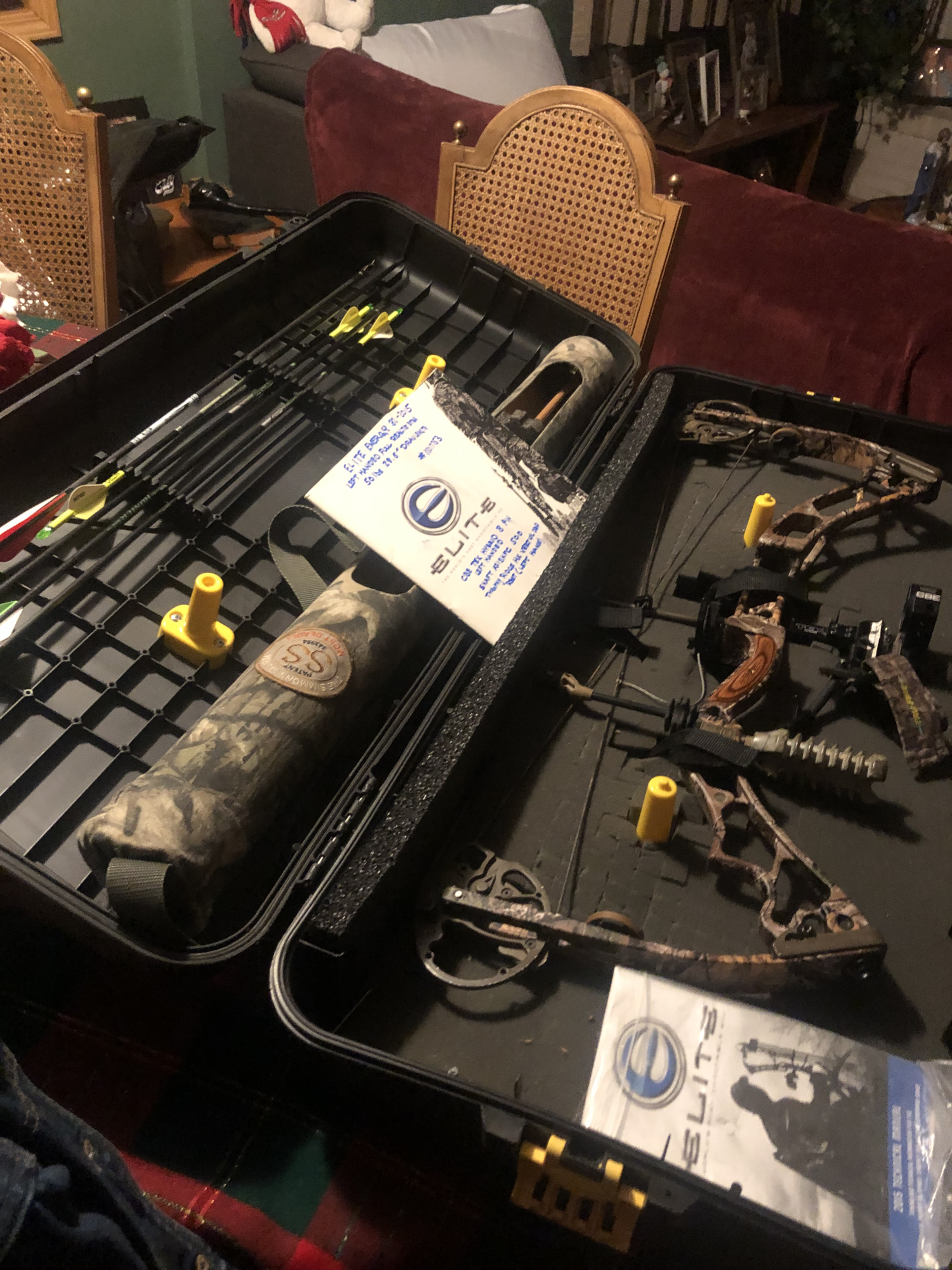 2015 elite 32 coumpound bow only used 3 seasons , re stringed 2019 ,all info on Pamlet on pucture view ,used but in very good shape comes with everything shown in picture,had shoulder surgery and had an afib inplant so had to go to a crossbow , original owner