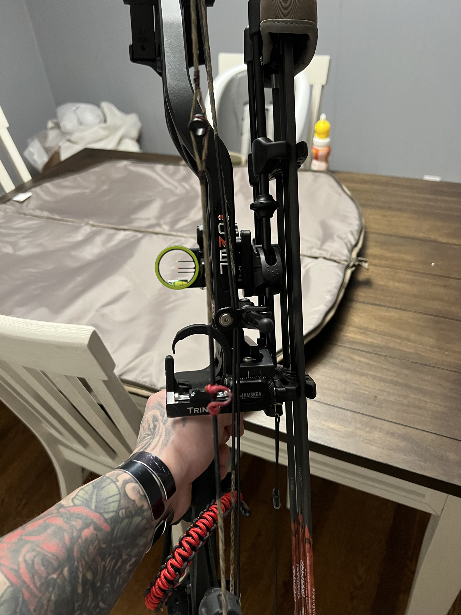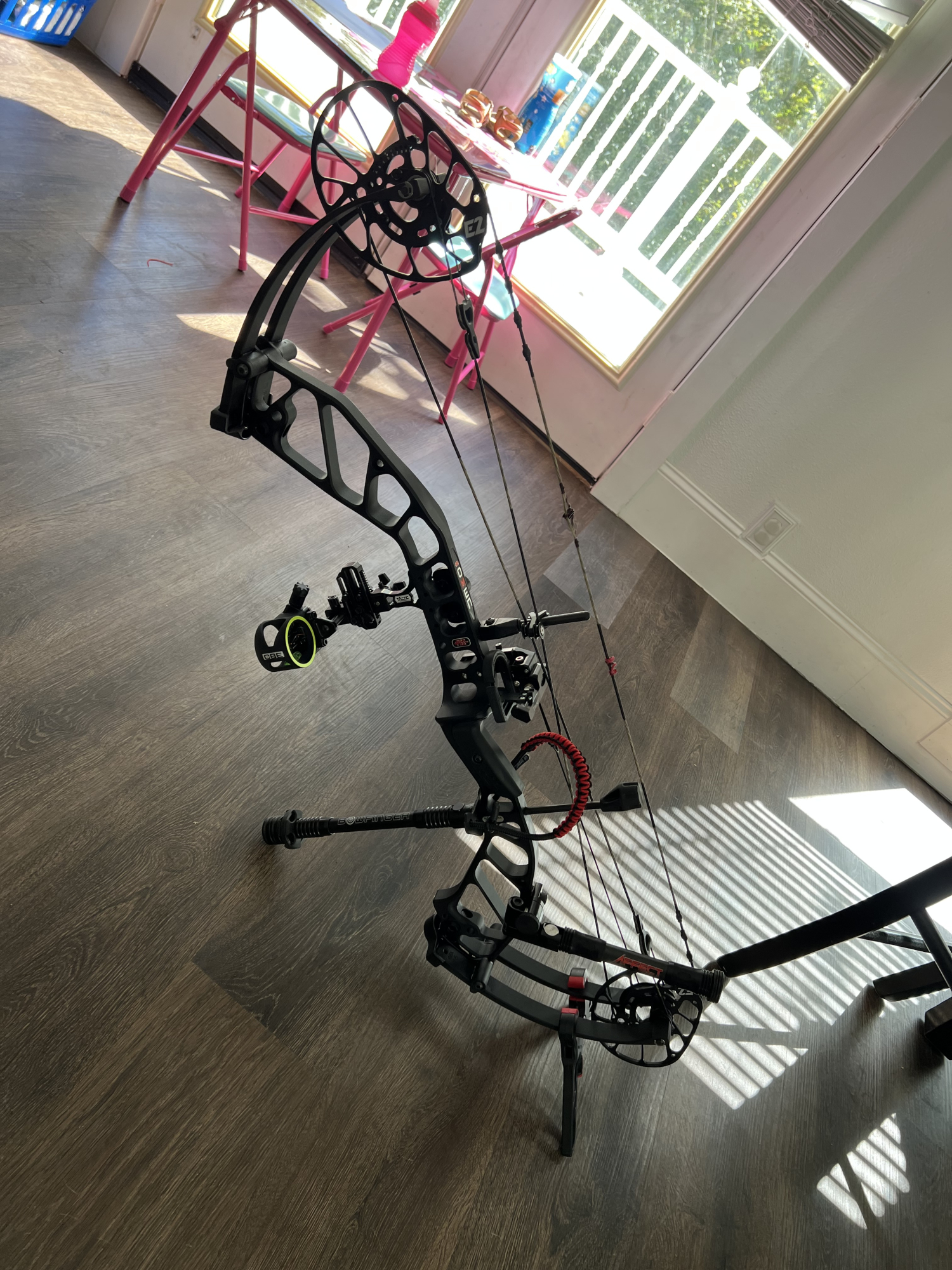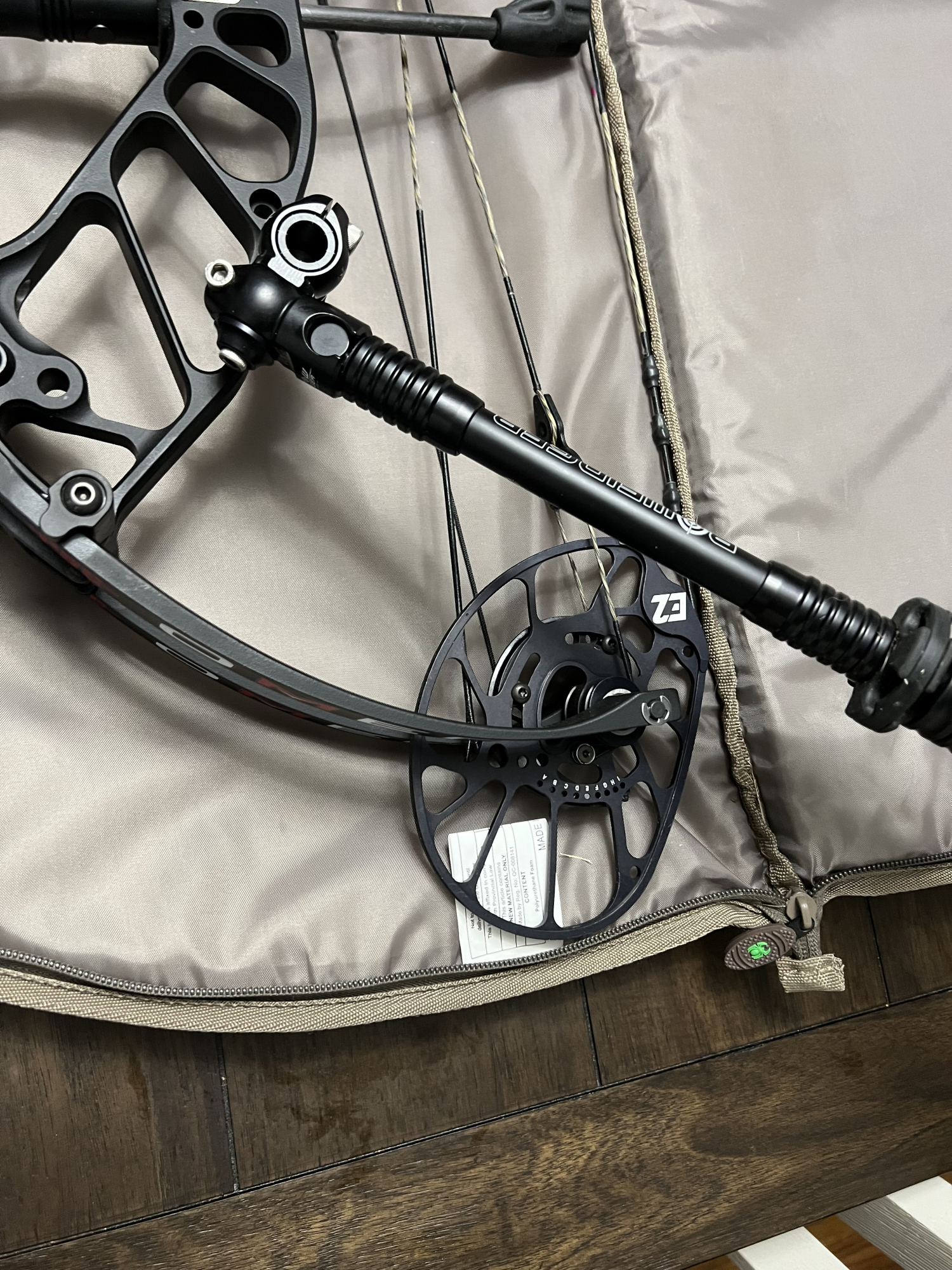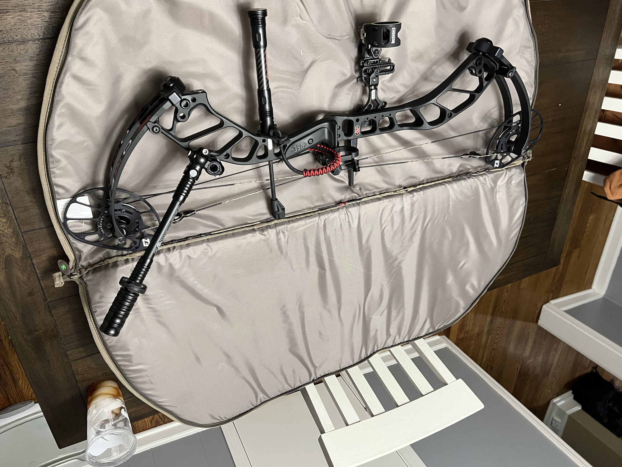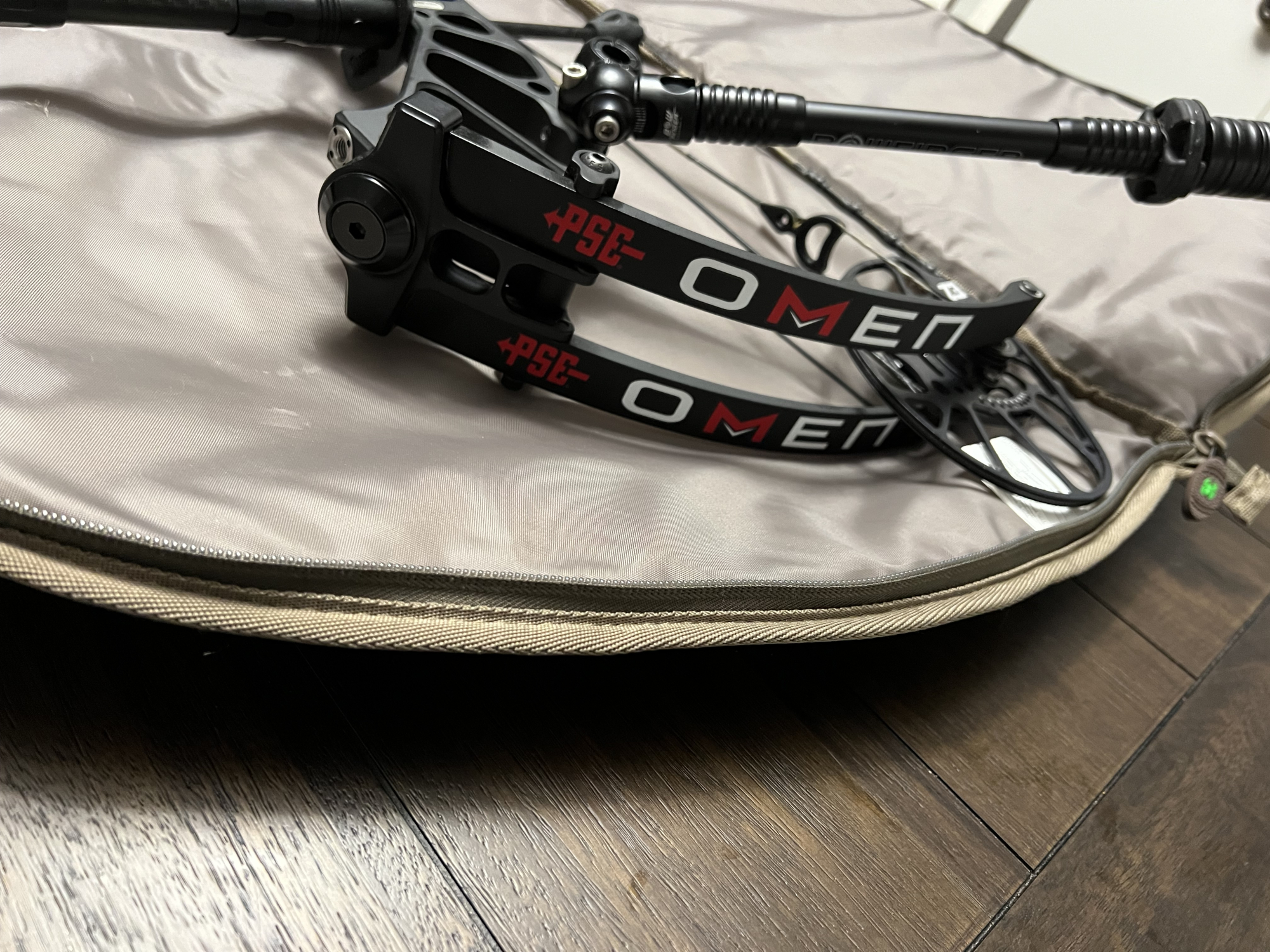 2023 PSE OMEN 33, black eagle rampage arrows 300, CBE tactical hybrid sight 3 pin, Hamskea trinity hunter pro rest, B3 rock release, bow finger hunter stabilizer 8”, G5 head loc air quiver, tarantula delux bow case, bow finger ultimate rear riser side bar, bow finger 10oz black stack weight.