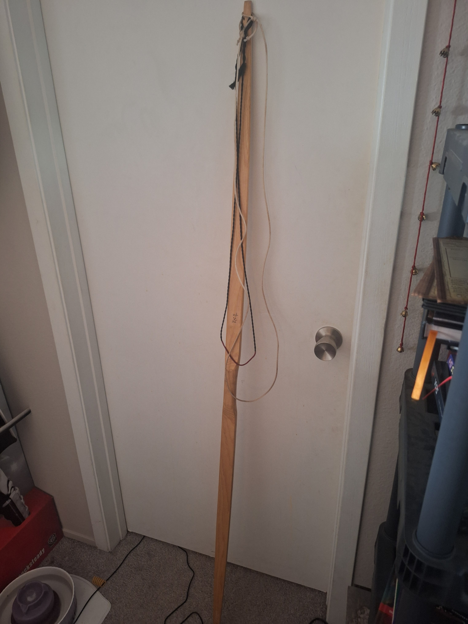 A wooden bow I bought at a Ren Faire bow and arrow vendor a few years ago and never got to use. It comes with the bow stringer and bow string as well. It is in new condition because I bought it and never touched the thing.