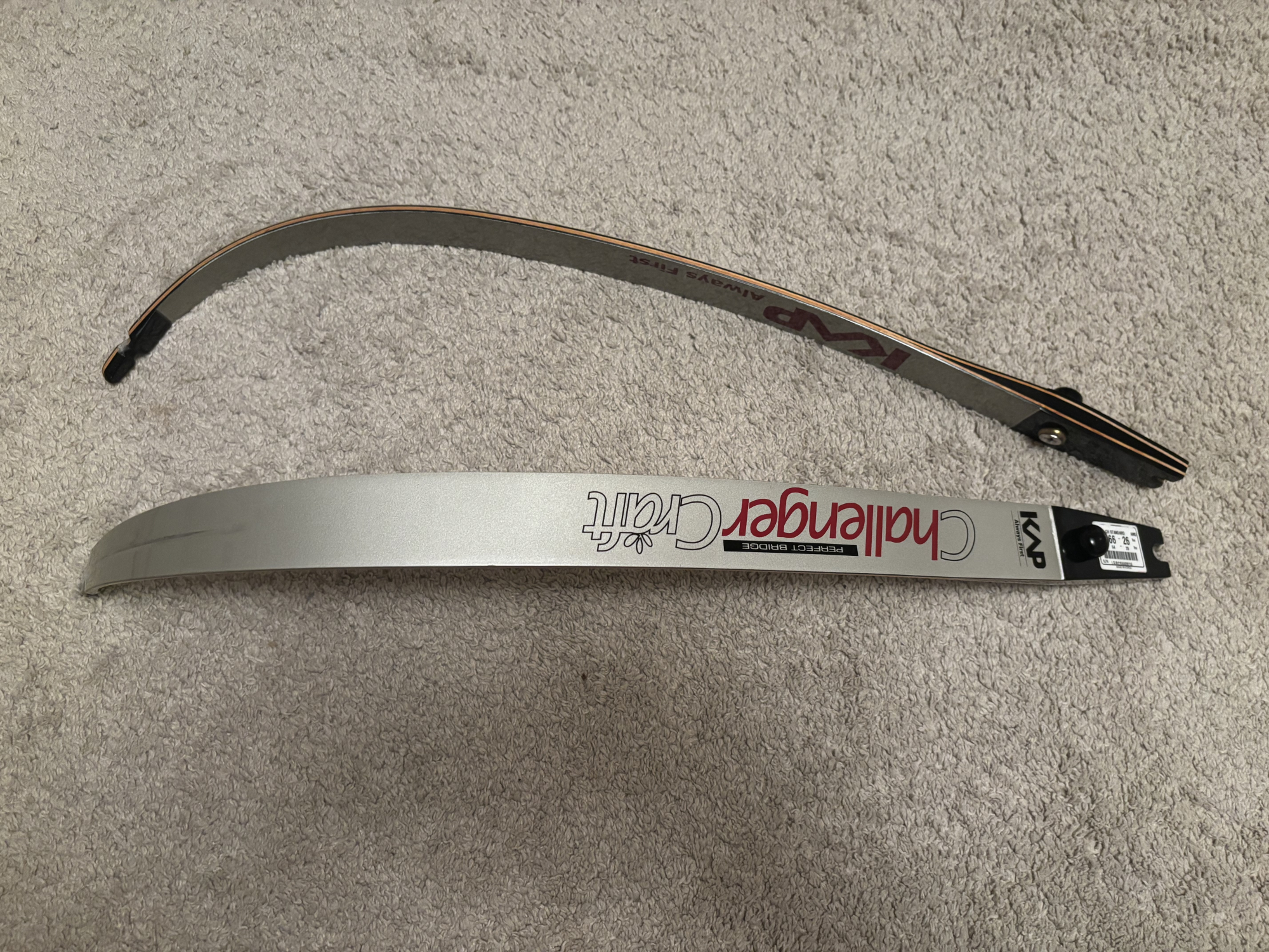 1 x Set (2 limbs) KAP Challenger Craft limbs 64”, 28 lbs @ 23” riser