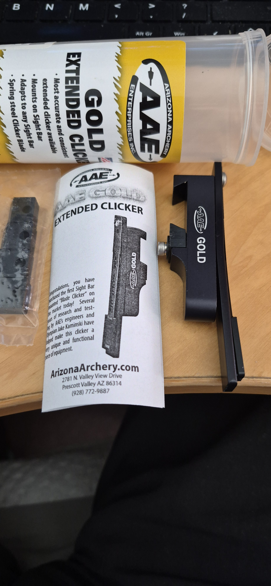 This is a brand new sight bar clicker, uses AAE's Gold spring steel clicker blade, the Gold Extended Clicker is the most accurate and consistent extended clicker available. The Gold Extended Clicker mounts to and will adapt onto any sight bar on the market. Price includes postage, collection welcome from the HP22 area.