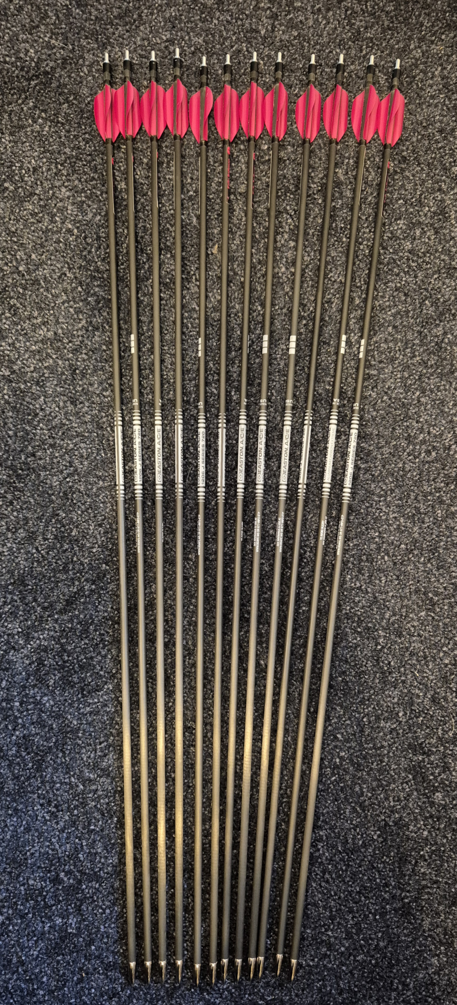 Only shot twice but too stiff so immaculate condition. Fletched with original spin wings and 11gr points.