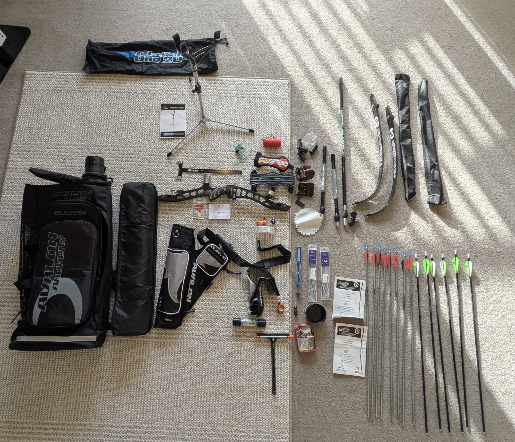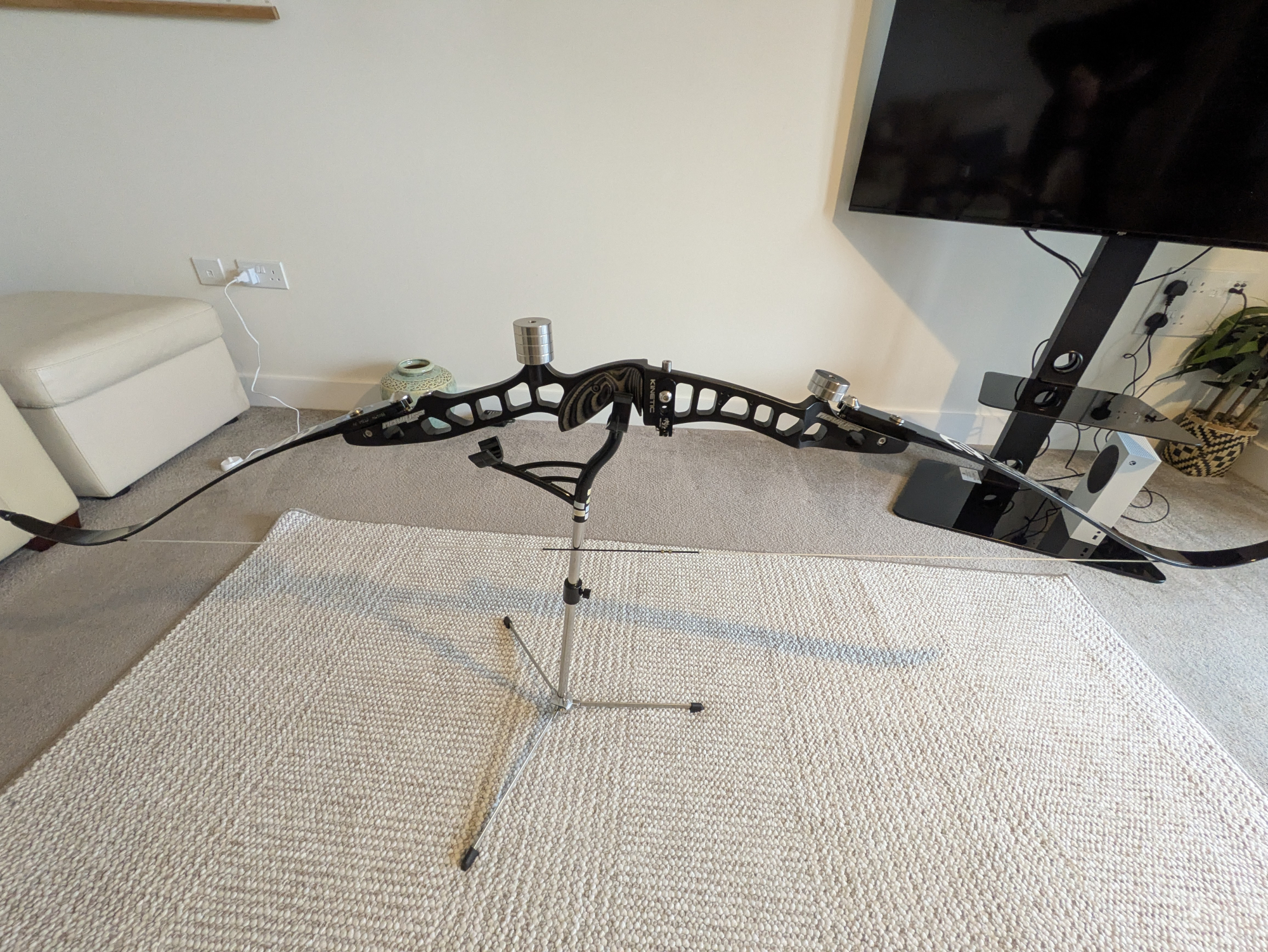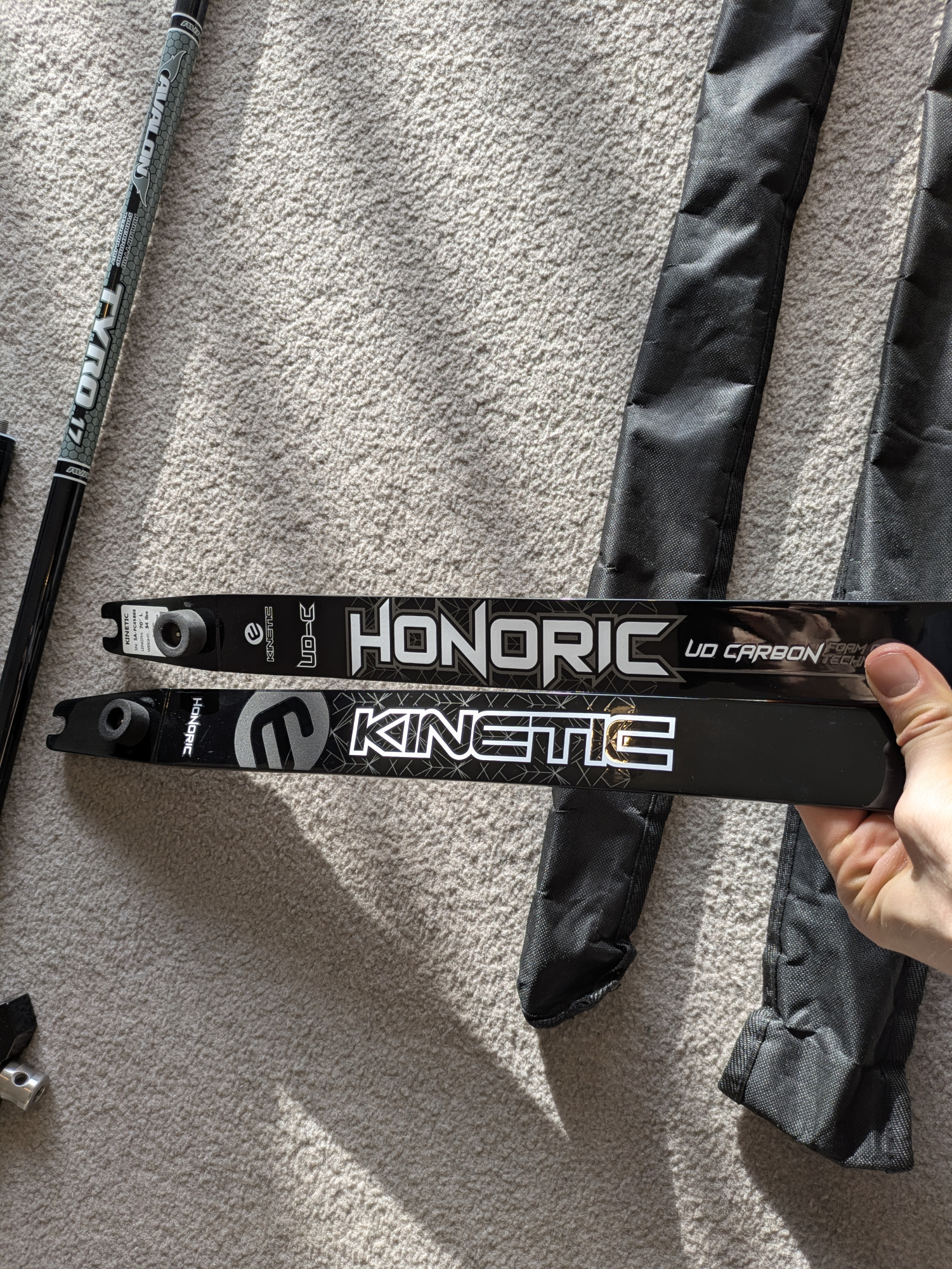 Full set of barebow and recurve archery. You can use it as a recurve or barebow. Includes New string, a string in excellent condition and an old recurve string. Limbs and weights haven't been used much. Got off Merlin recently. Kinetic Honoric Carbon Foam Recurve Limbs - 70" - 34#
