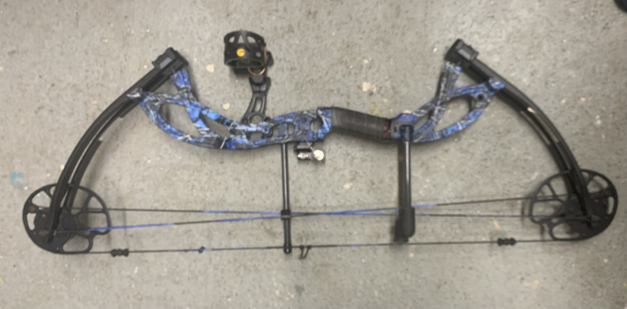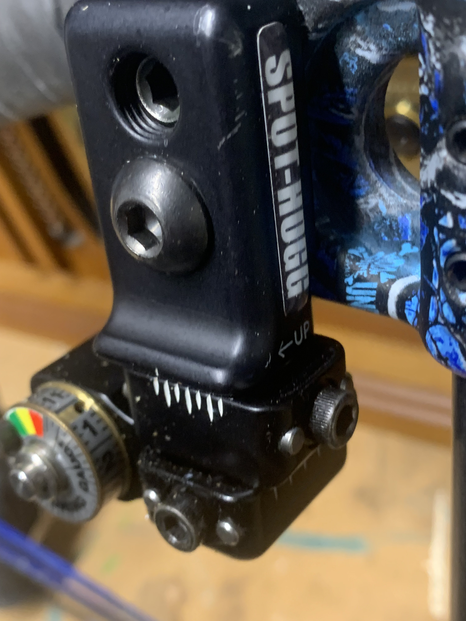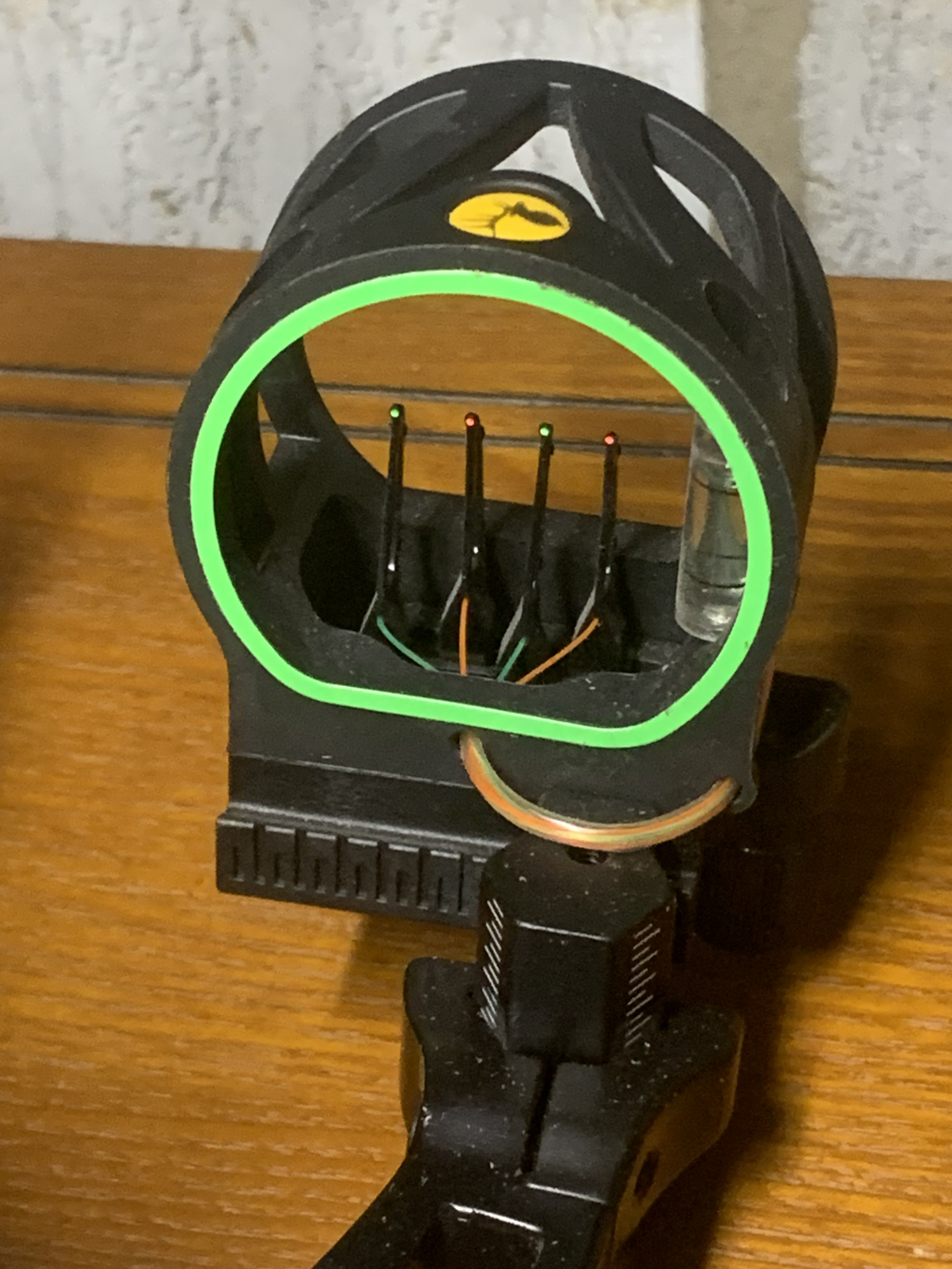 It’s fitted with a Spot Hogg arrow rest and a 4 pin scope.