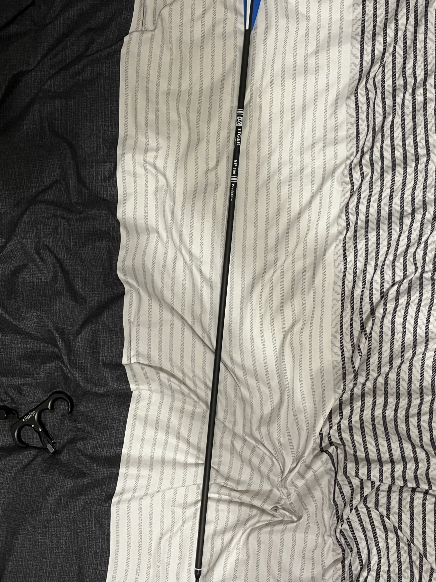 - 6 carbon arrows, field points, with 2 blue and 1 white fletches.