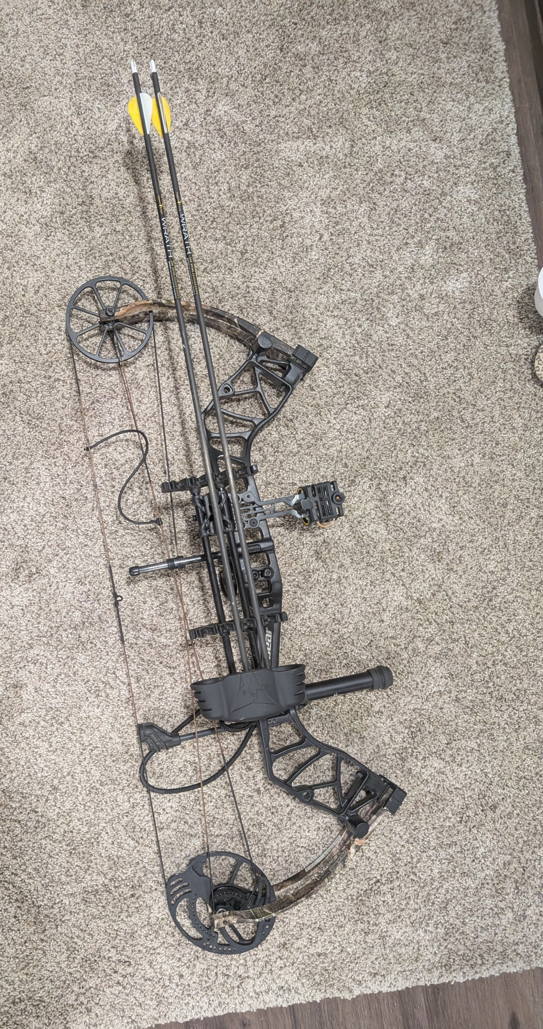 Bear radiant compound bow. Fiber optic sights.RTH Package Mossy Oak DNA Camo
