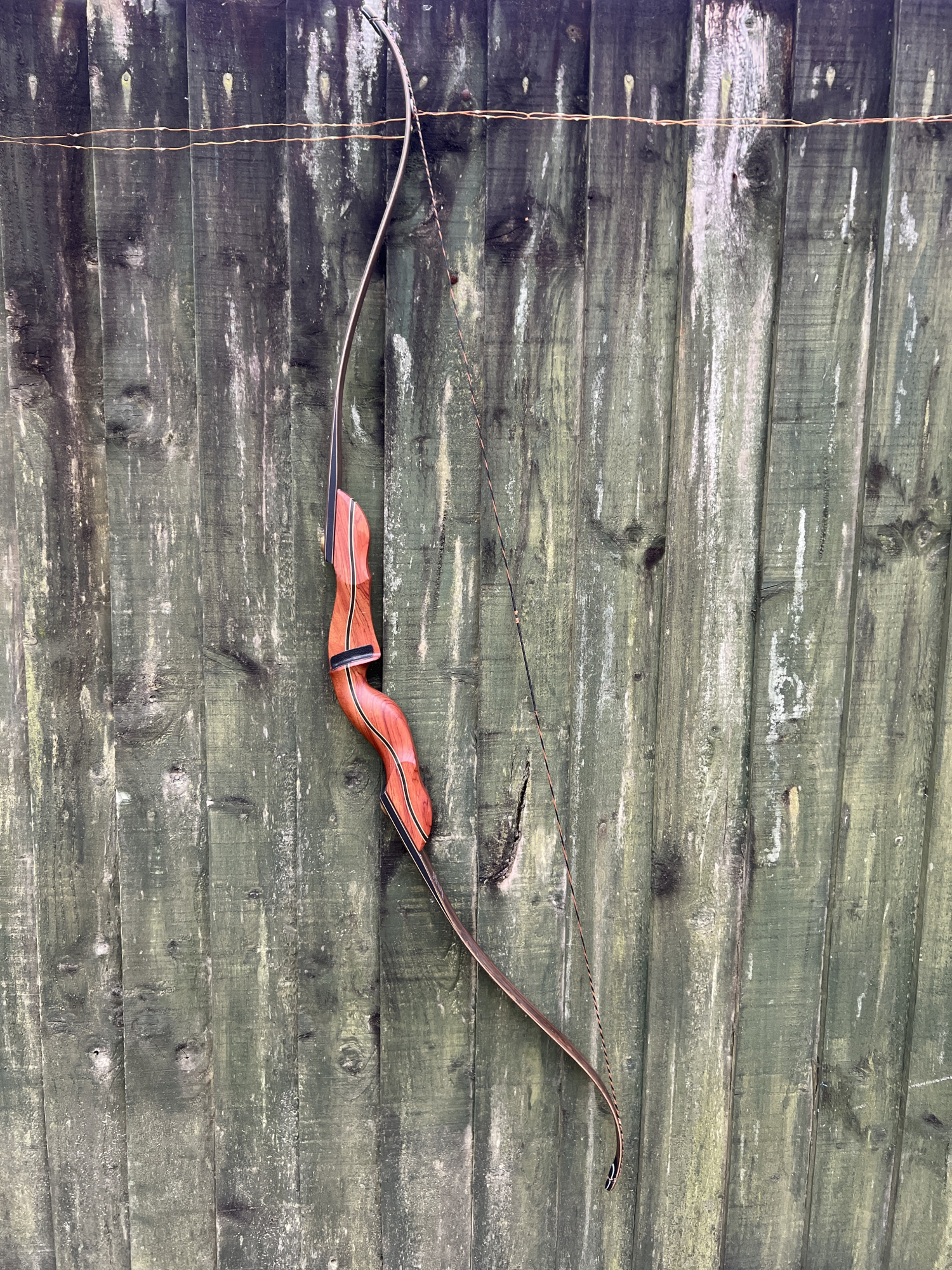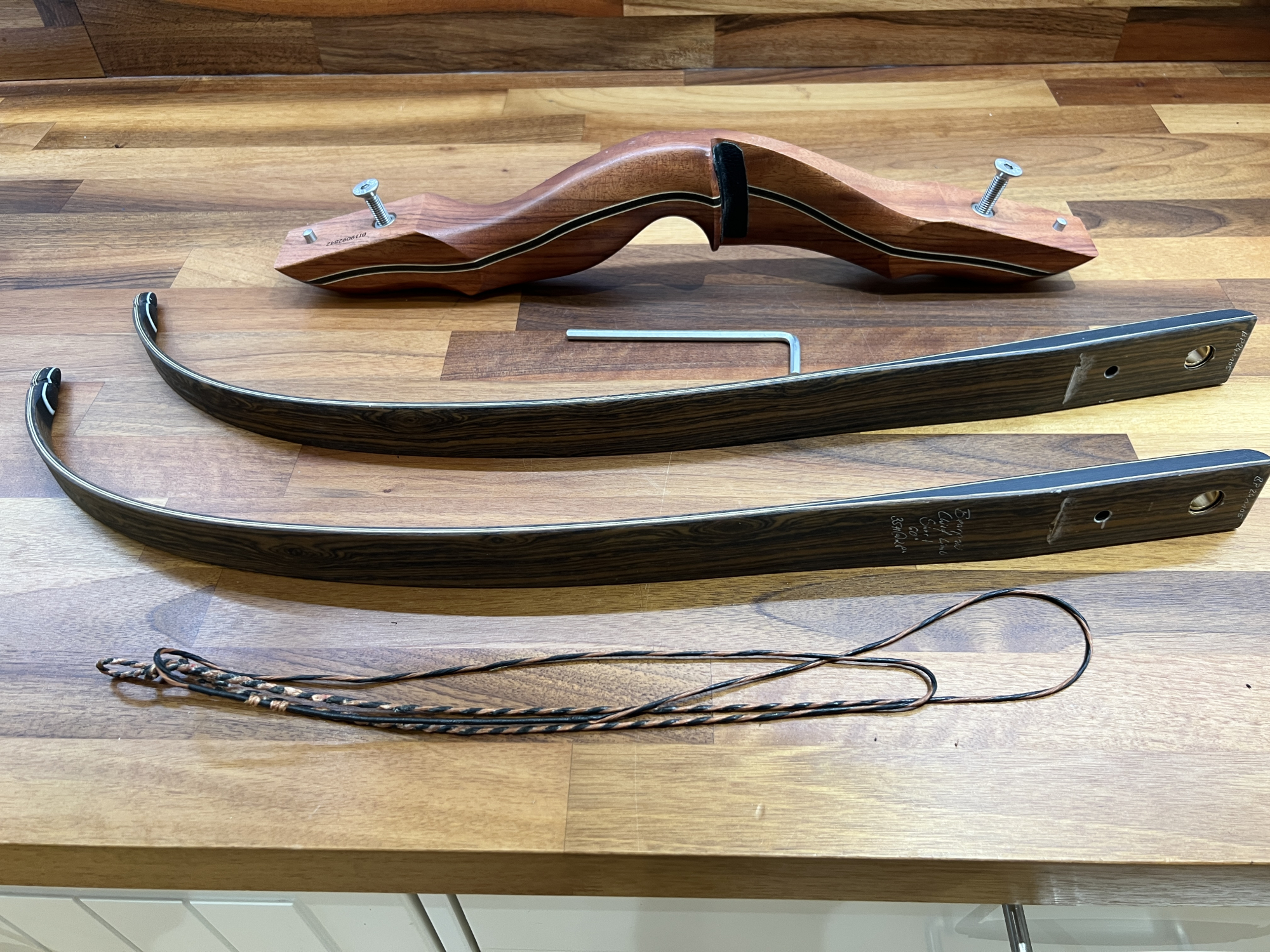 | I have for sale a Bearpaw (Bodnik) Mohawk Recurve Field Bow The bow is for Right Hand Archers The Bow / Limb weight is 35 lbs. The riser is right handed, bolt down, 17” and made of Bubinga complete with leather arrow pass. The limbs are Bearpaw Chief recurve limbs, short, golden sandalwood and 35lbs. There is slight marking where they have rubbed against the riser when bolted down. This is only the clear laquer coating and does not affect performance. It is similar to how ILF Limbs rub. The limbs and riser make a 60” field recurve bow. The bow comes complete with two strings. The bow is less than a year old and the reason for sale is a change in archery discipline. |