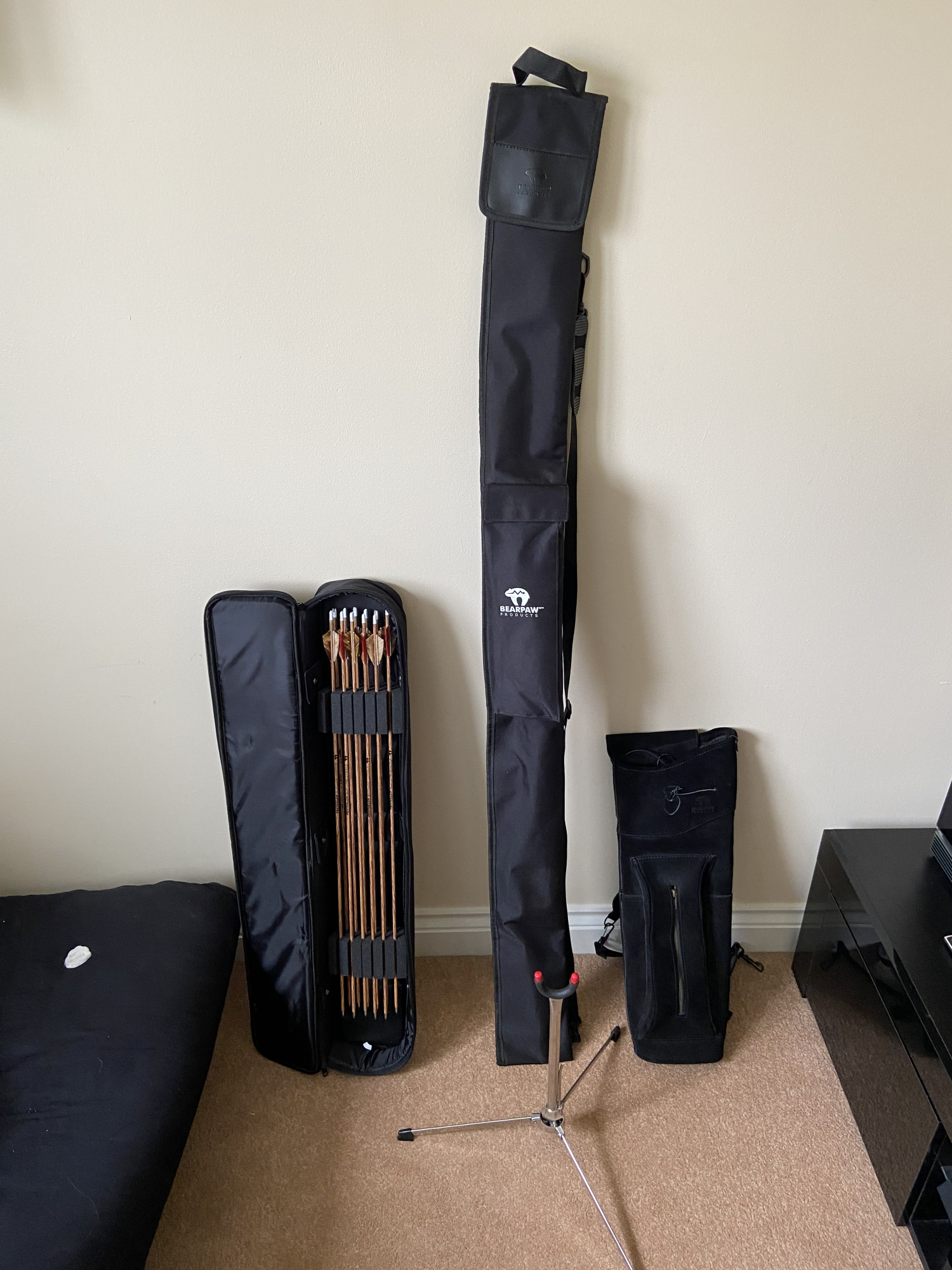 Having bought the bow from Merlin Archery Ltd just prior to the pandemic, it didn’t get much use at all and has resided in a wardrobe since. The bow and a handful of accessories are in almost mint condition and deserves a new owner who will use it well and care for it.