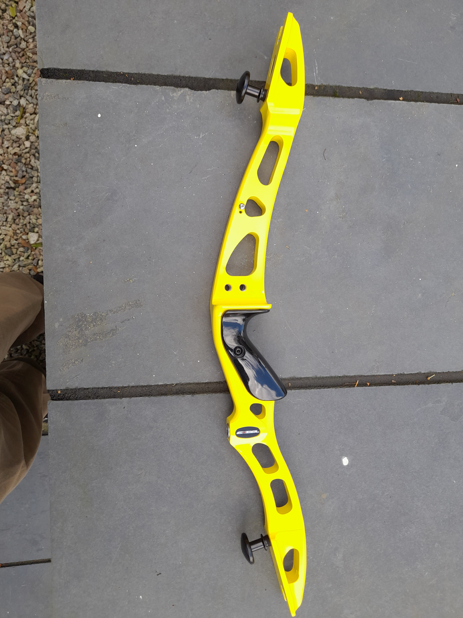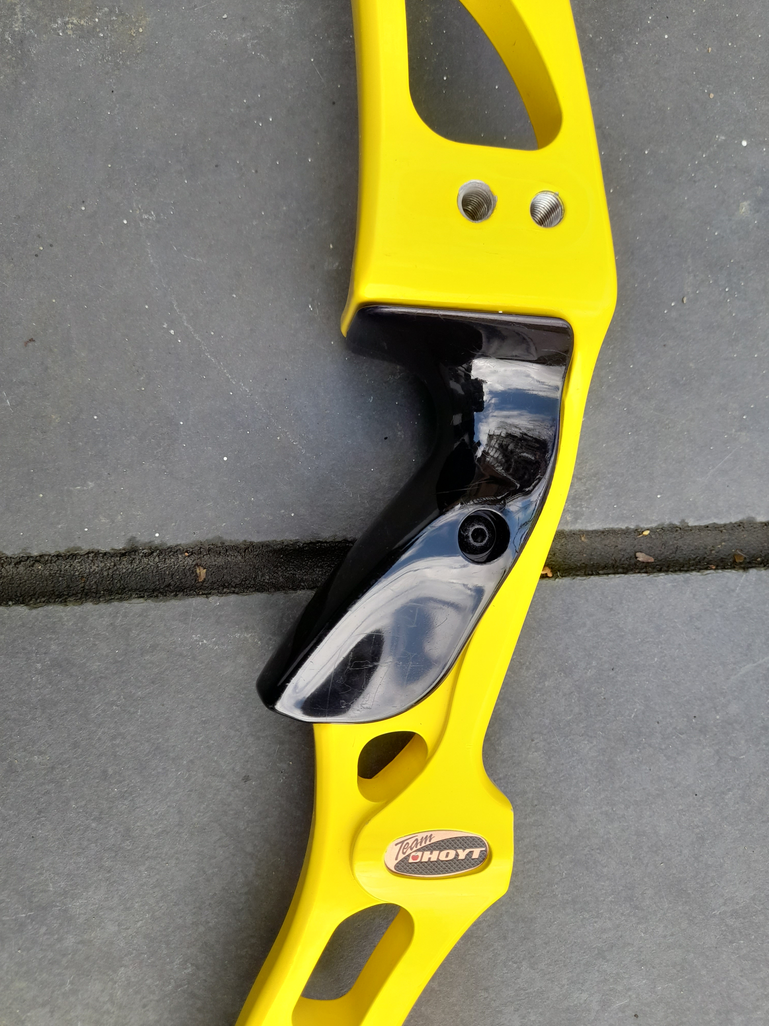 Hoyt Excel aluminium 23" riser, KAP Winstorm (22-24 lbs) limbs making bow length of 60", bow stand, 6 x 23" Easton arrows, 6 x 26" Easton arrows, Avalon Tyro recurve Backpack.