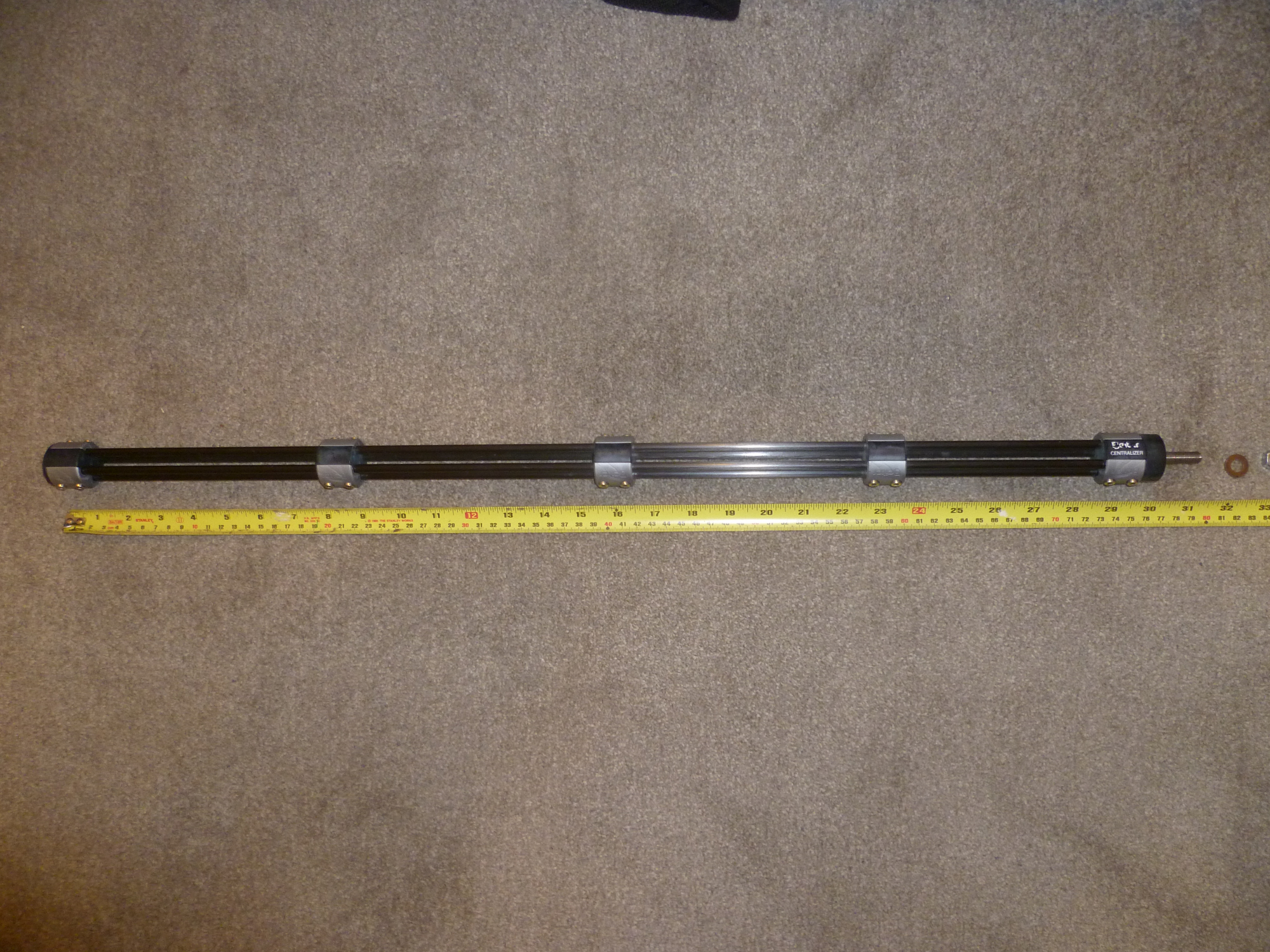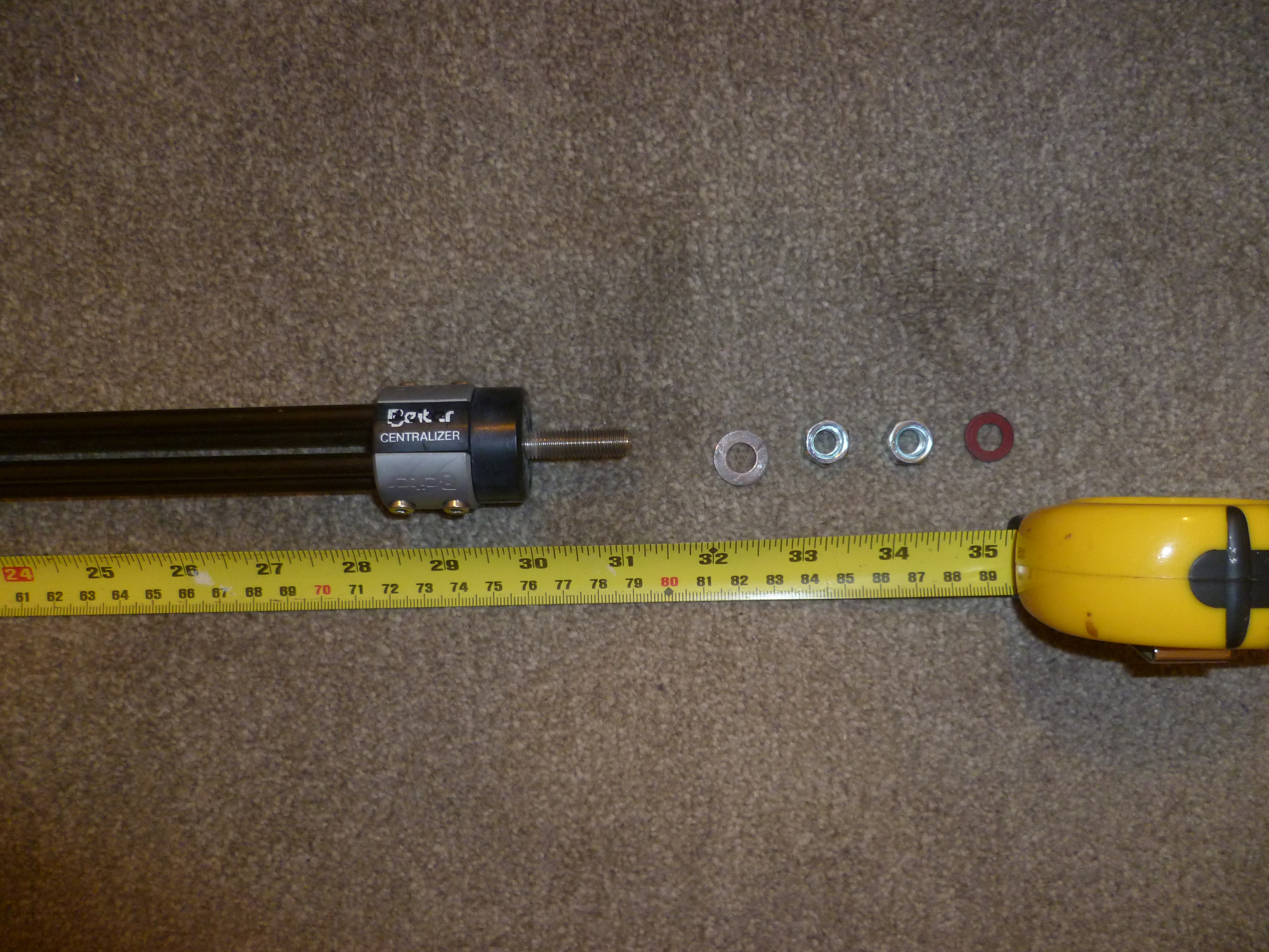 A Beiter 'Centraliser' multi long rod stabiliser, 30" long. The threaded end is 27mm long and will either go through a V bar or if it's to go directly onto the bow the nuts can be added as shown to shorten the thread if necessary.
