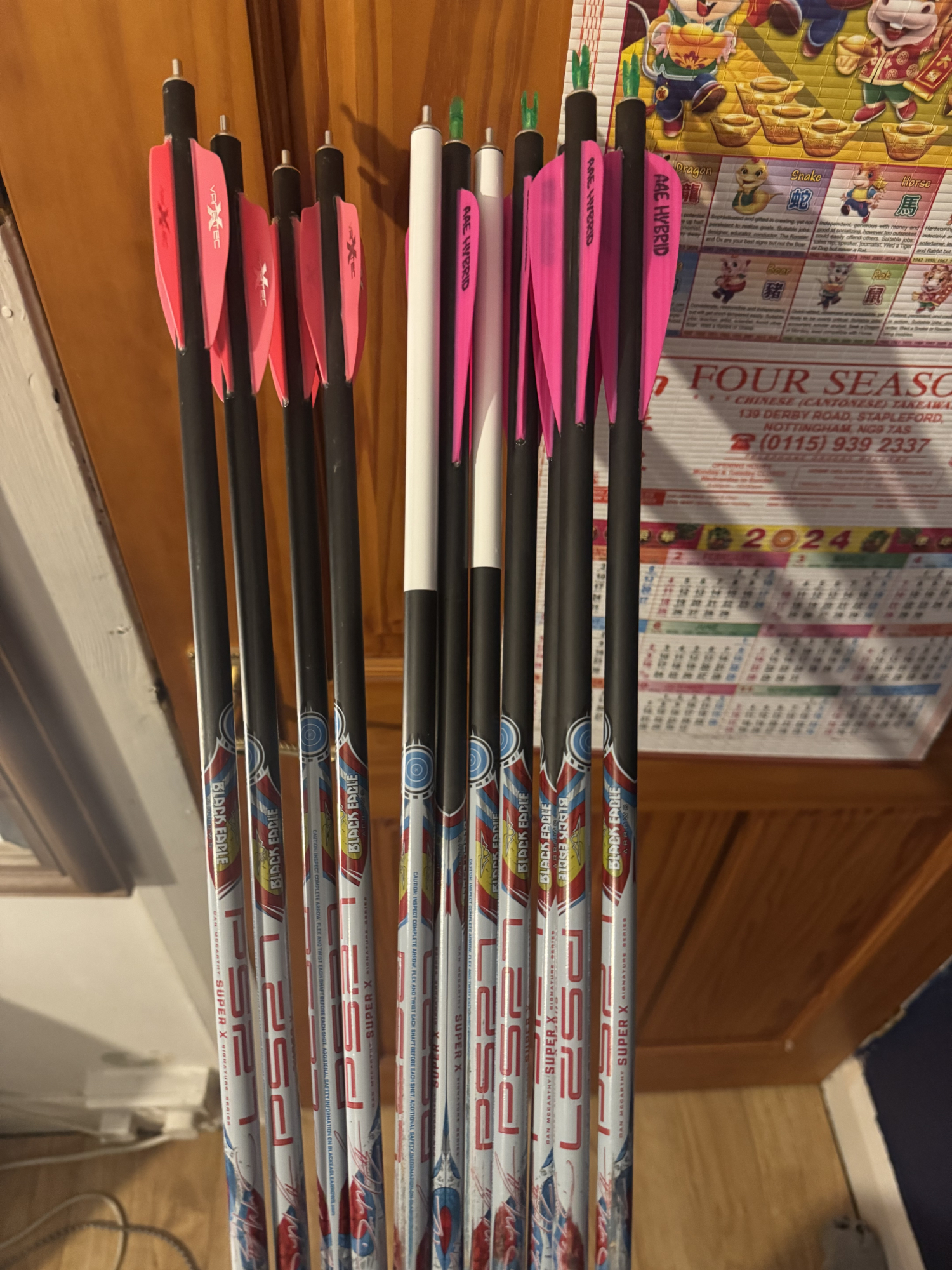 300 spine 29” carbon to carbon. Comes with 200gr points.