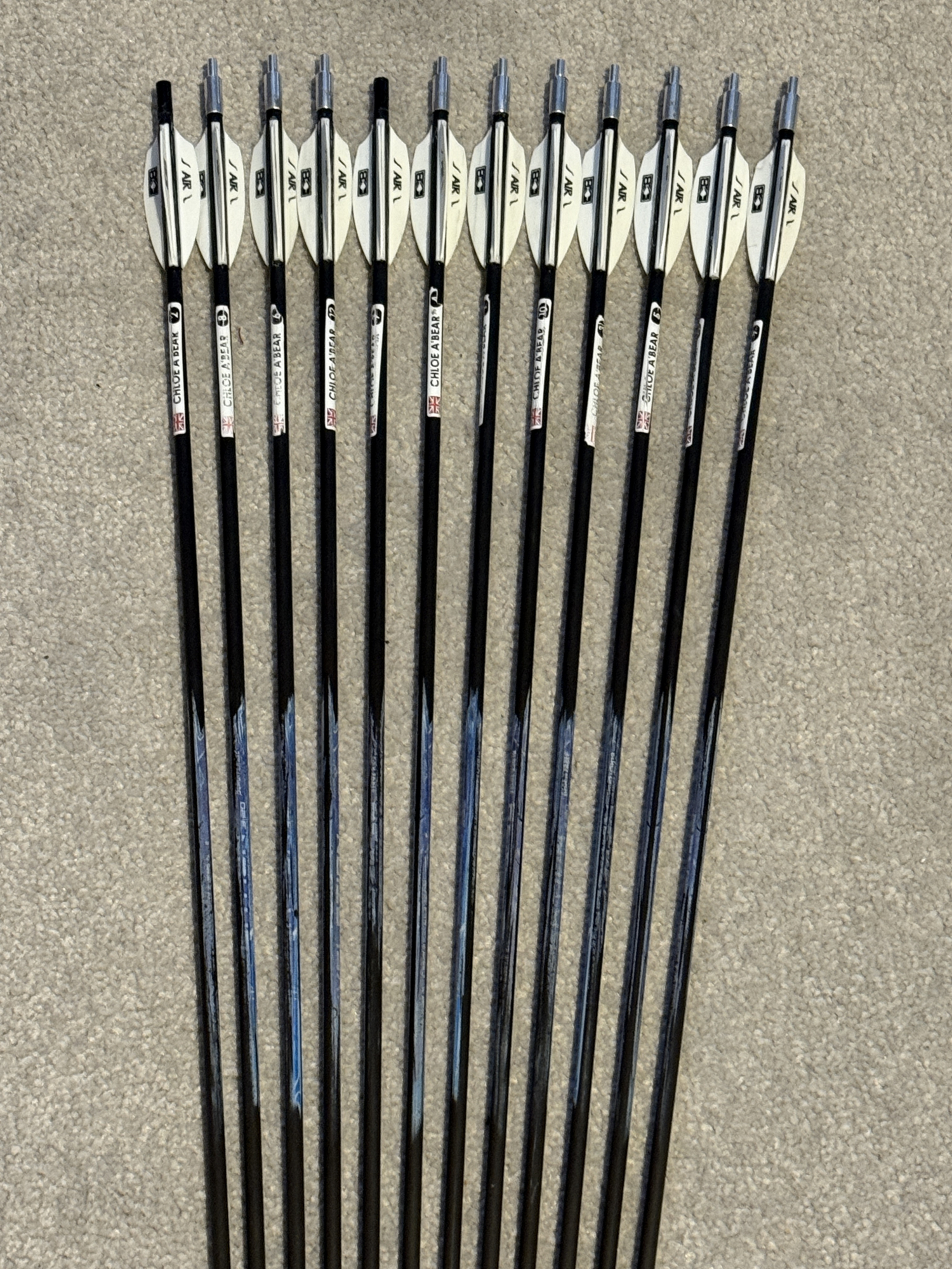 Well used but nothing wrong with them, still got a lot of life left in them (all carbon). Selling as no longer needed as I am shooting a different spine now. Any questions drop me a message