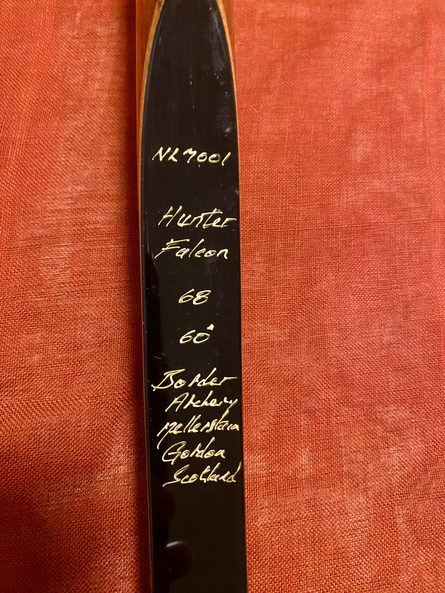 Beautiful condition handmade Border Archery Hunter Falcon 68” with 60lbs draw weight
