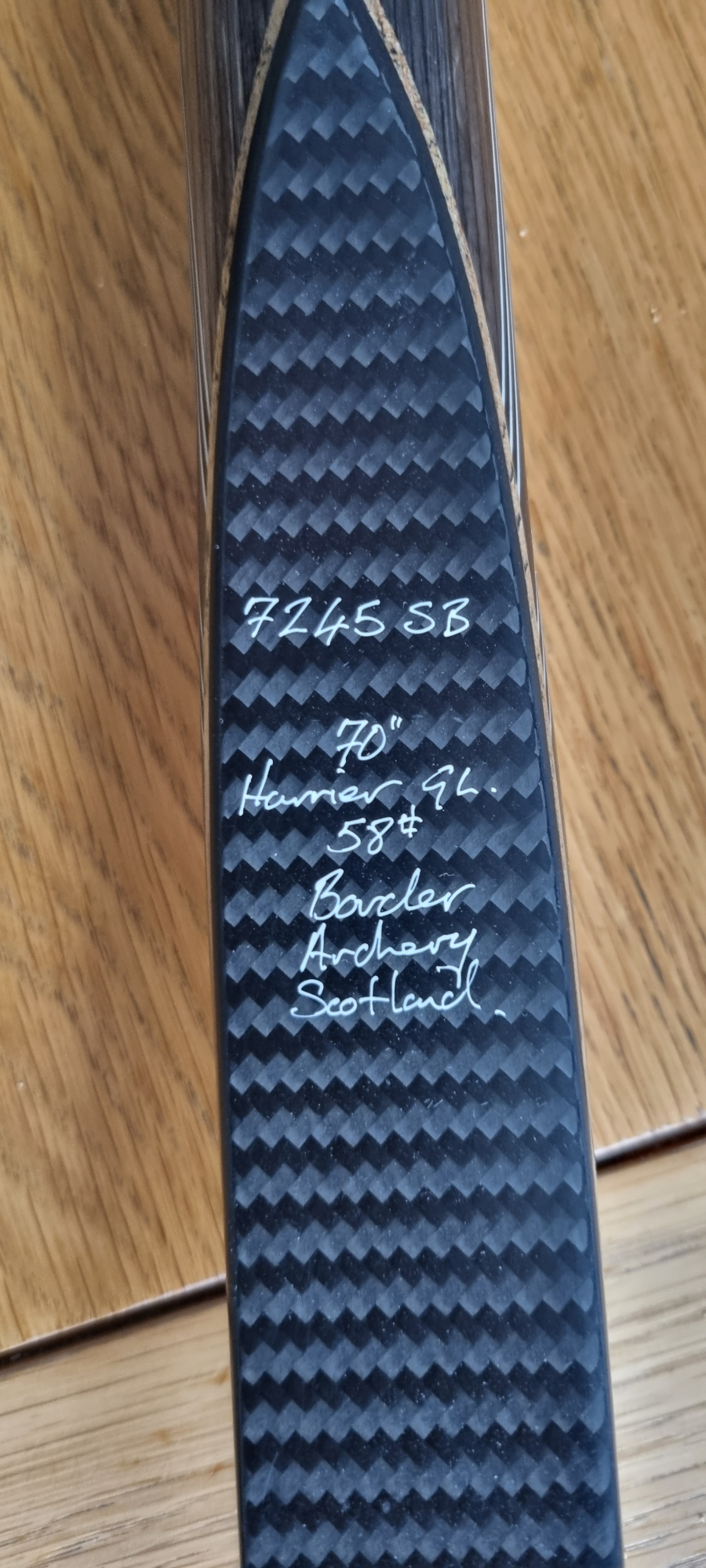 Border Harrier GL. 70" longbow 58lb # 28". Bow is in very good condition. Its only a year old just not shooting it. Midnight heritage with white accents.