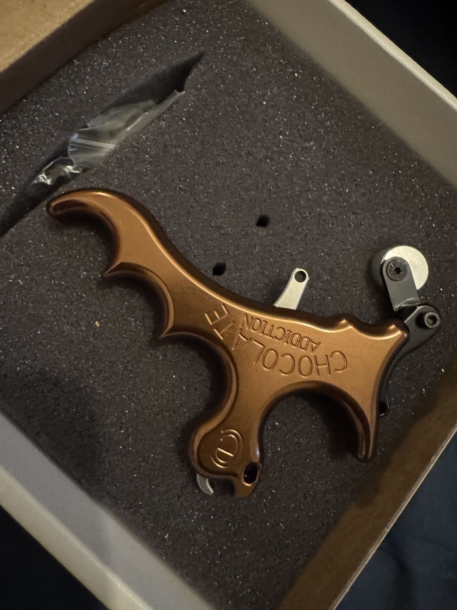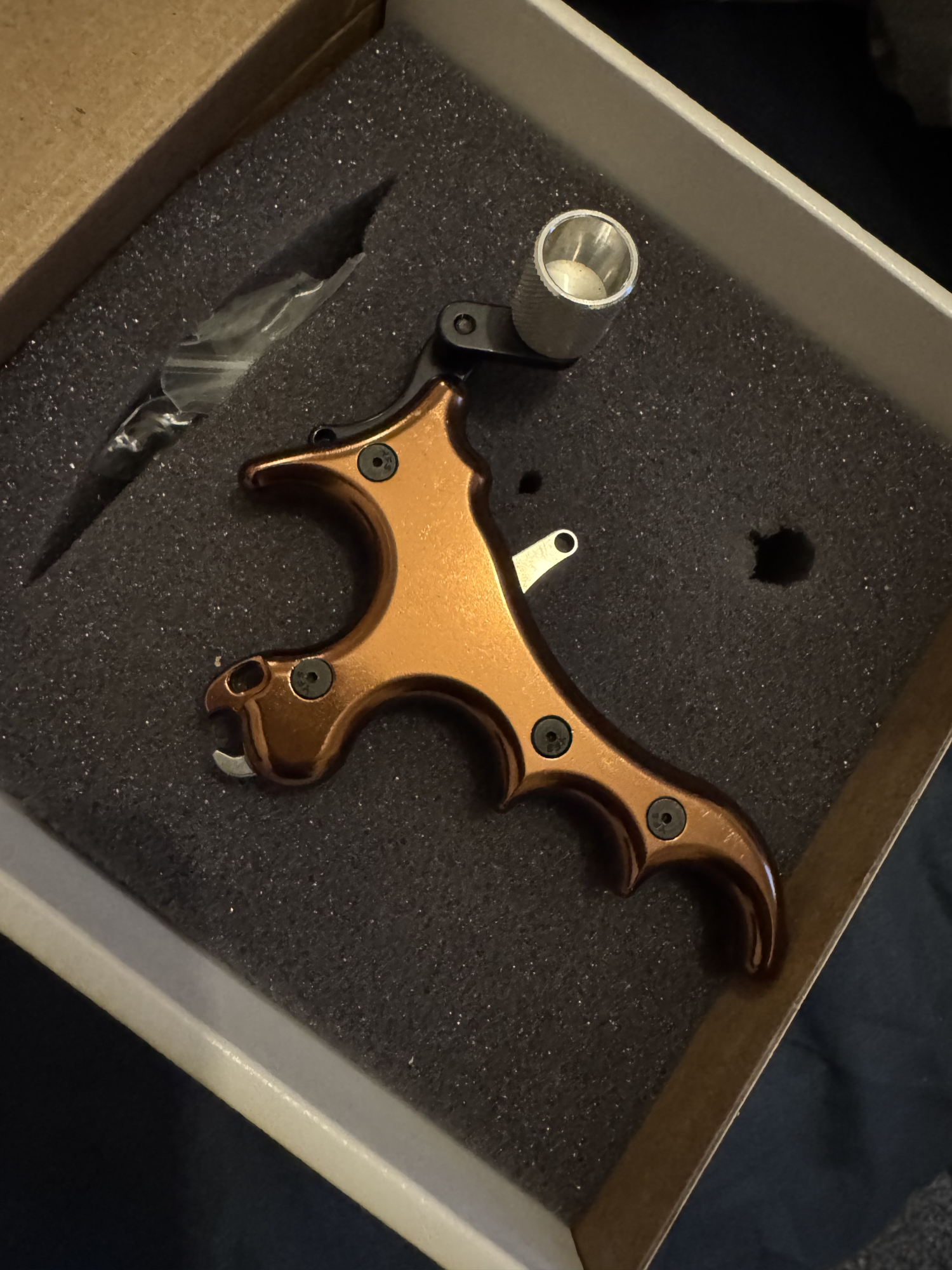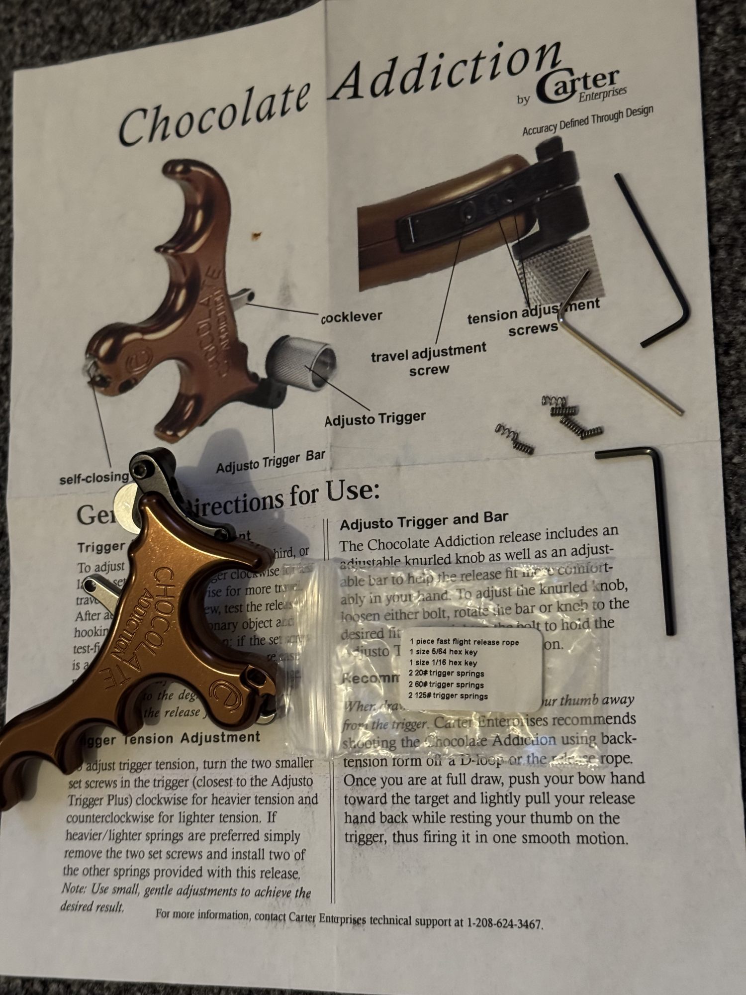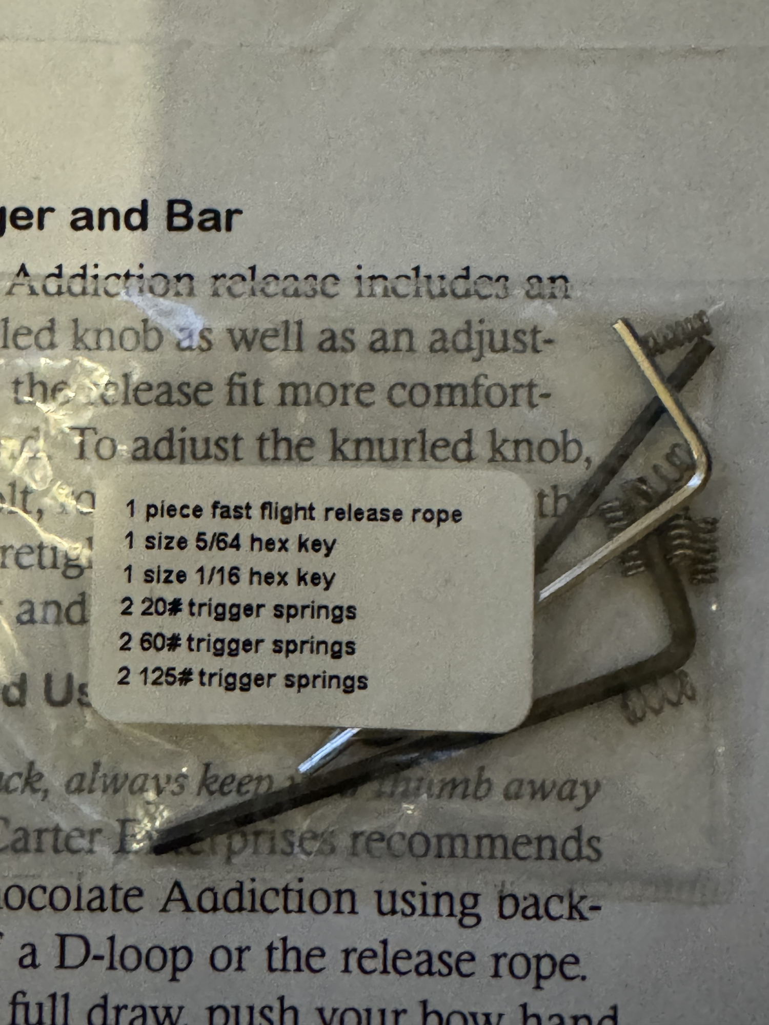 - At the base of the trigger lever are three holes: The first one adjusts trigger travel while the other two are spring-loaded to affect trigger tension. The tension and travel setting options are endless. The cocking lever on the back closes the hook with one motion. Place hook on release rope or D-loop, and push cocking lever, simple as that.