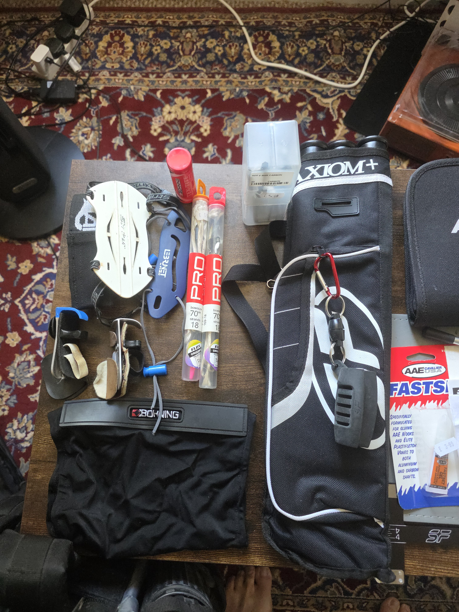 Includes everything in the pictures - Bow Stand / Stringer / Arrows Tube / Bag / Spare vanes / Tools / Arm Guards / Strings / Finger tabs.