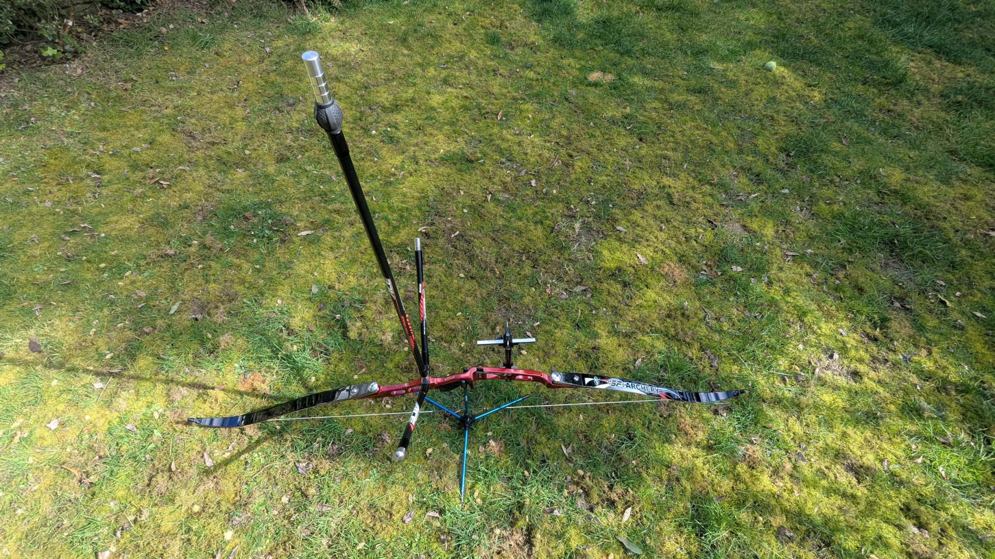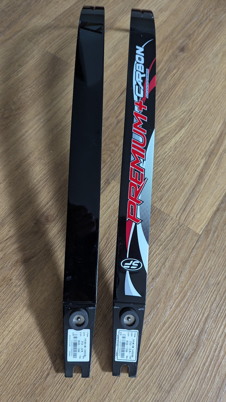 - SF Archery Premium Carbon (Premium+ Carbon) limbs – Medium length (68" bow configuration), marked approx. 34–36 lb on a 25" riser. Smooth-drawing carbon/wood construction – a noticeable step up from basic fibreglass limbs.