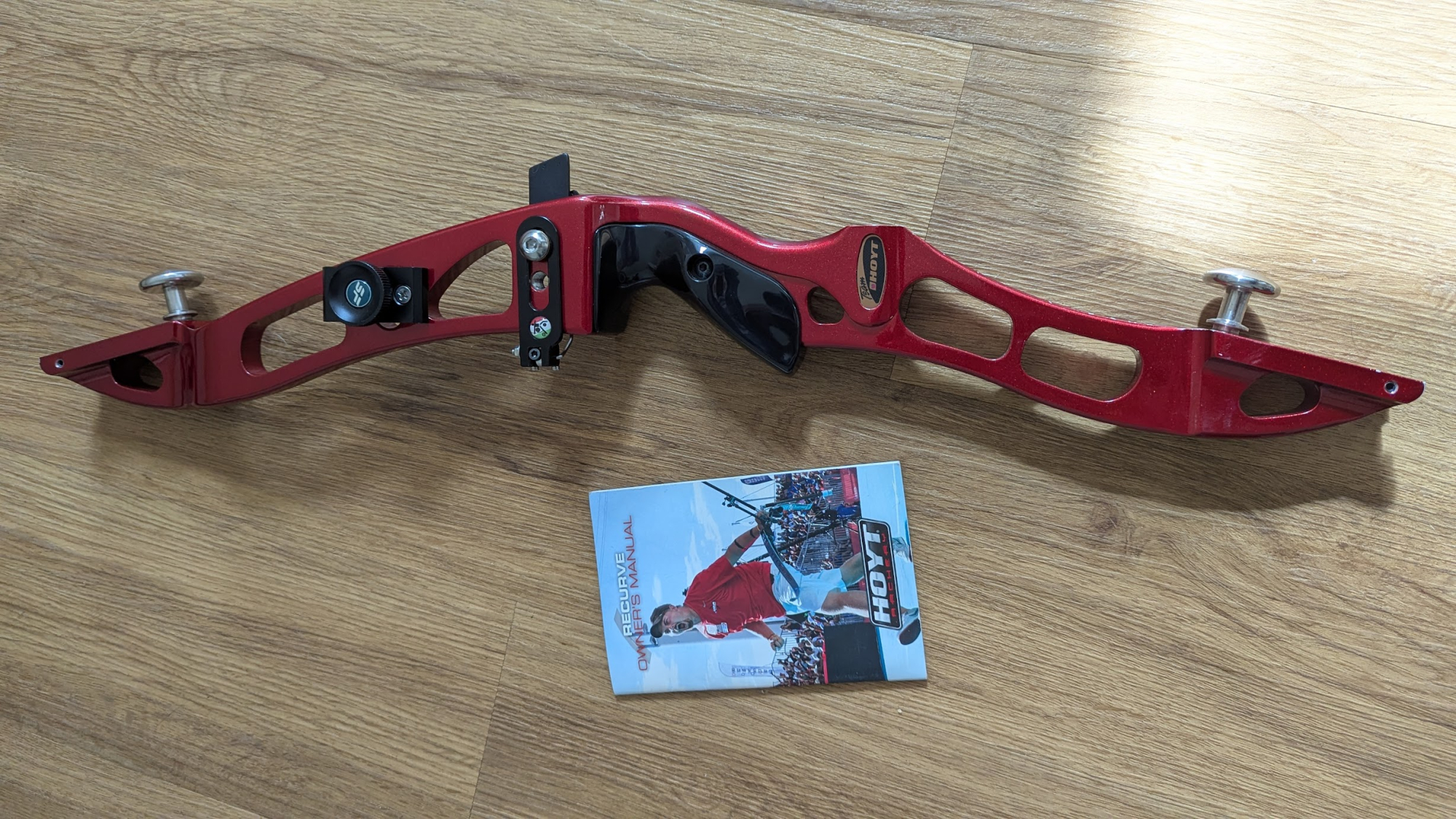 - Hoyt Grand Prix Horizon 25" riser (red anodised finish, 2016 production) – Classic entry-level Hoyt with great build quality and ILF compatibility.