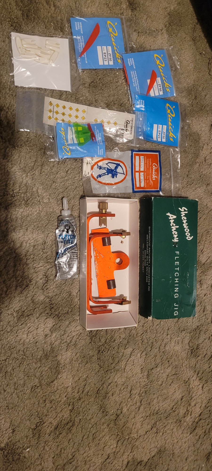 Great setup for club shooting or someone getting into archery without having to buy everything separately. theres a few chips on the hoyt riser but nothing bad. Some of the arrows require re-fletching.