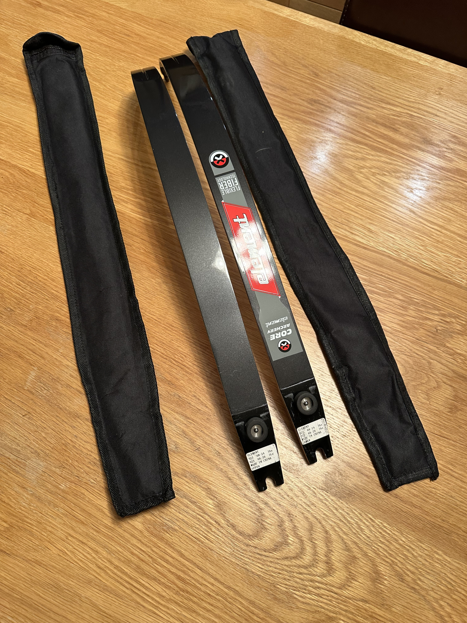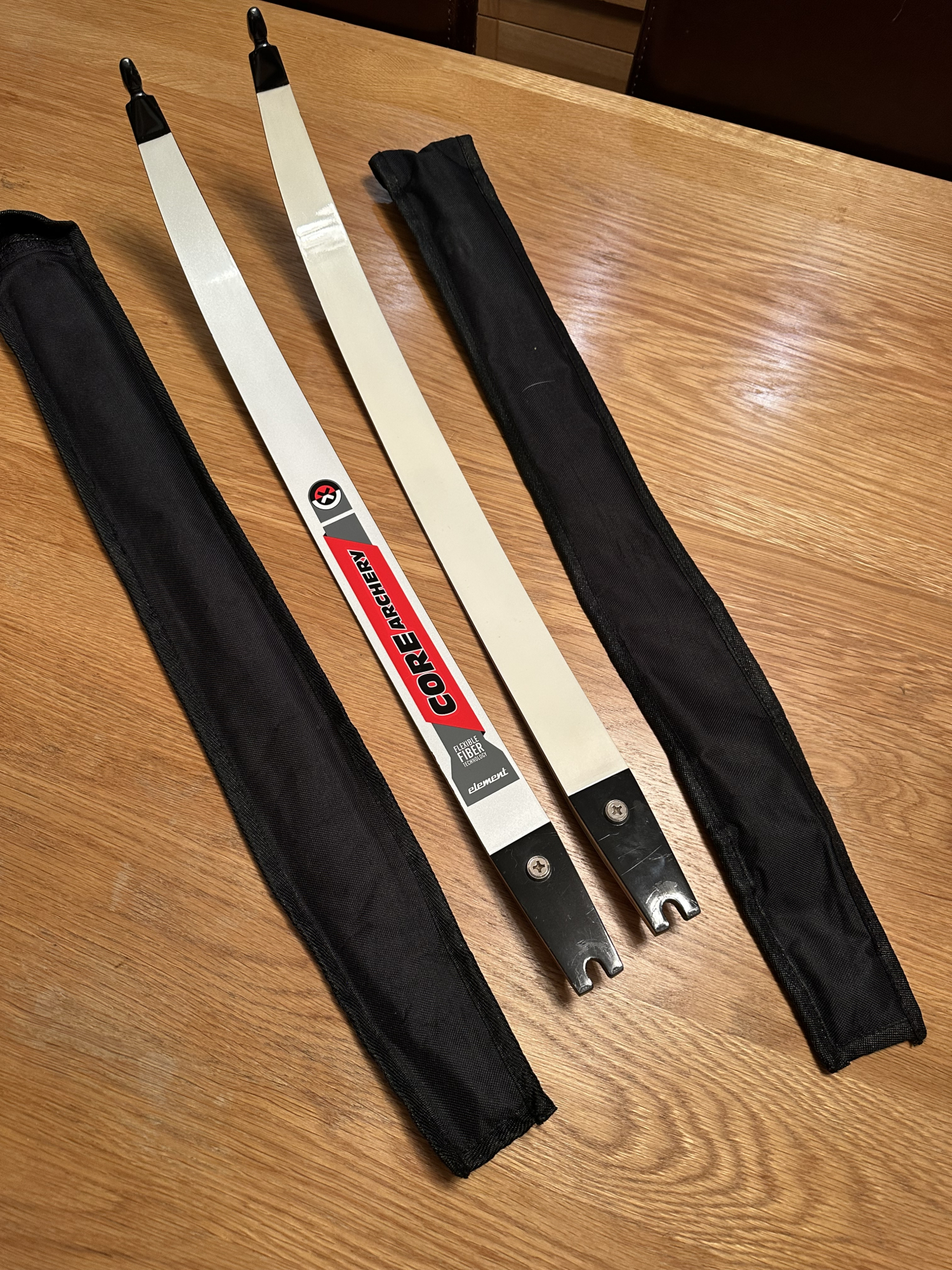Core Element Limbs. Medium length 24lb. Great limbs for new archer or intermediate archer looking to increase poundage. Some small marks from fitting into limb pockets. Includes sleeves.