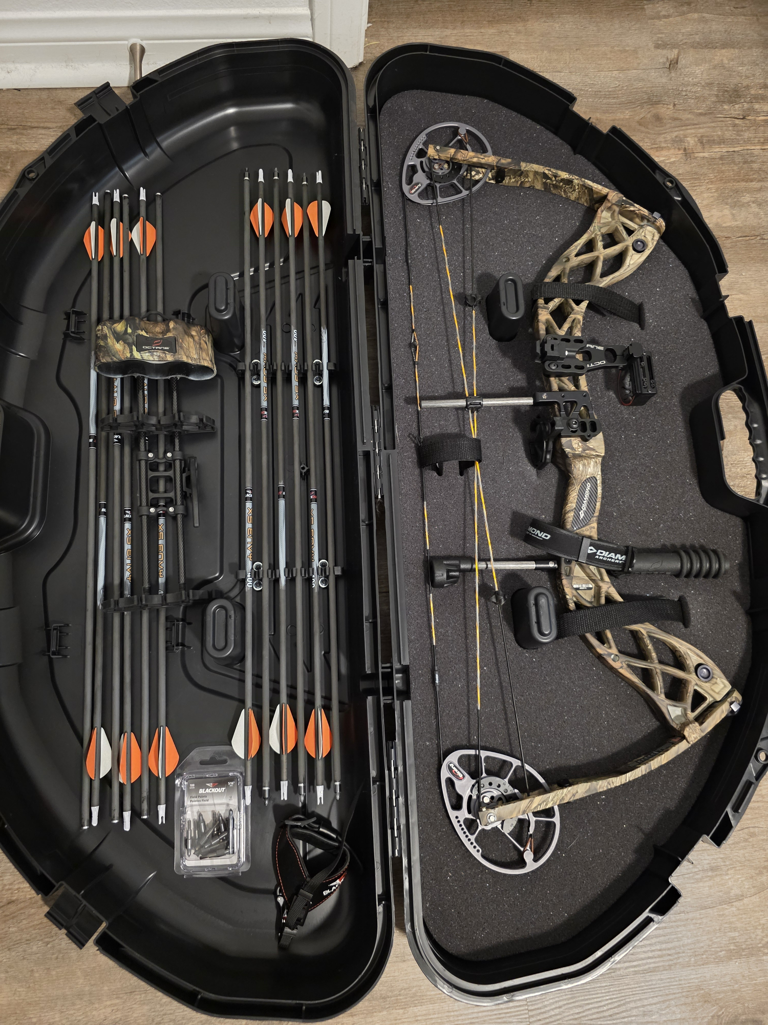 Brand new condition only fired 3 times inside Bass Pro Shop. This is the complete set sold at Bass pro shop with range arrows and case I purchased seperately. Adjustable up to 70 lbs. Willing to negotiate.
