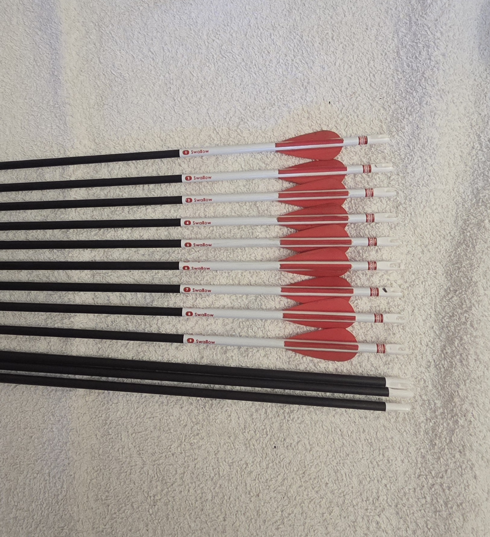 9 fletched and 3 bare shaft.