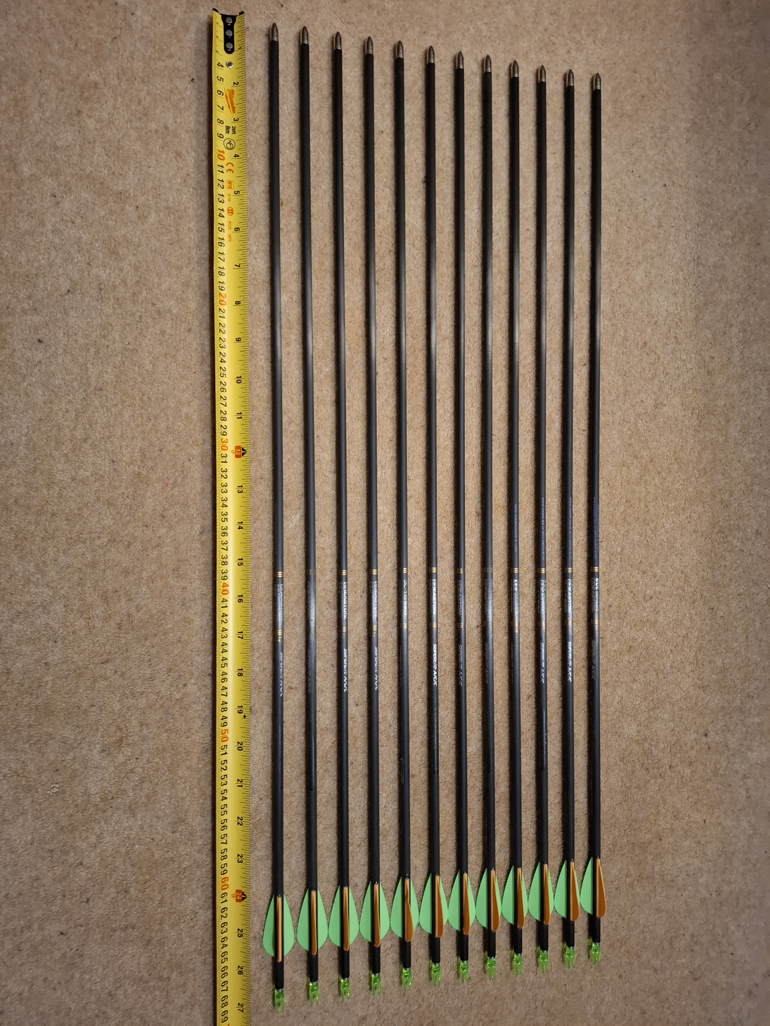 12x Easton alluminium/carbon composite Superlite a/c/c arrows. 26 and 1/4 inches.