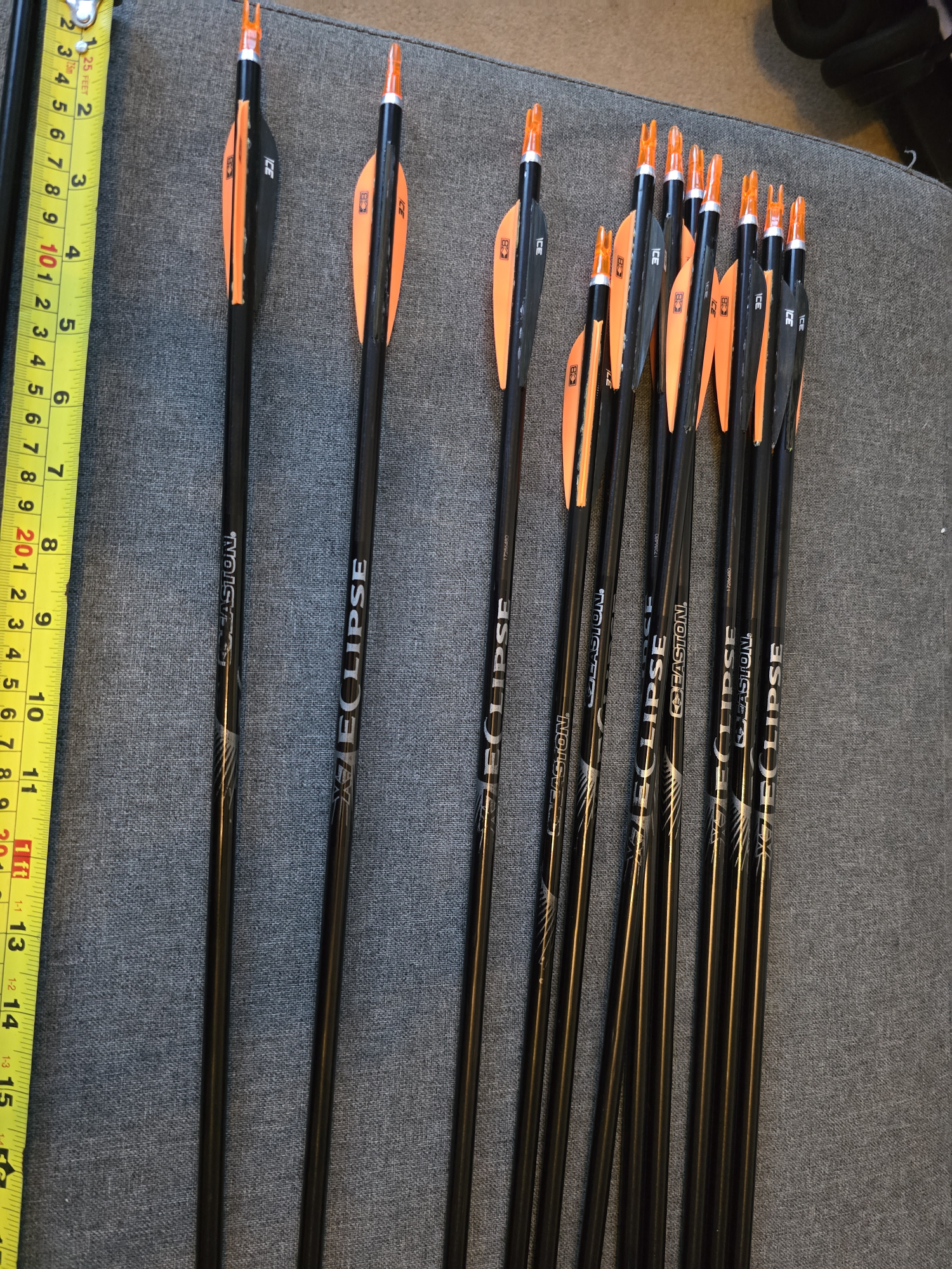 Used but in good condition easton x7 eclipses in 2214 spine and cut to just shy of 31inches using standard measurement and 1 is a bareshaft. Any other questions feel free to ask. Collection can be arranged or P&P can also be arranged at extra cost