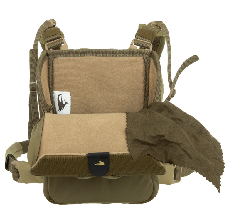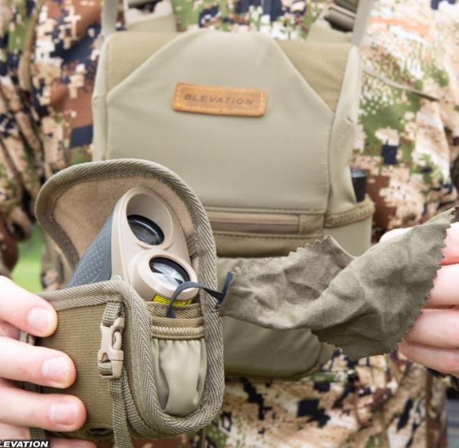 The ergonomic strap system features six points of adjustments to suit all body types. Neoprene sheathed, quick-connect buckles create a stealthy, easy on/off design. Also comes with the Elevation Rangefinder Case with dual closure systems, magnetic clasp for silent access or hook and loop for the ultimate protection of your rangefinder. Features push-up design to easily acquire your optics, dummy cord loop to secure in the desired location, attached lens cloth, and small outer pockets for storage.