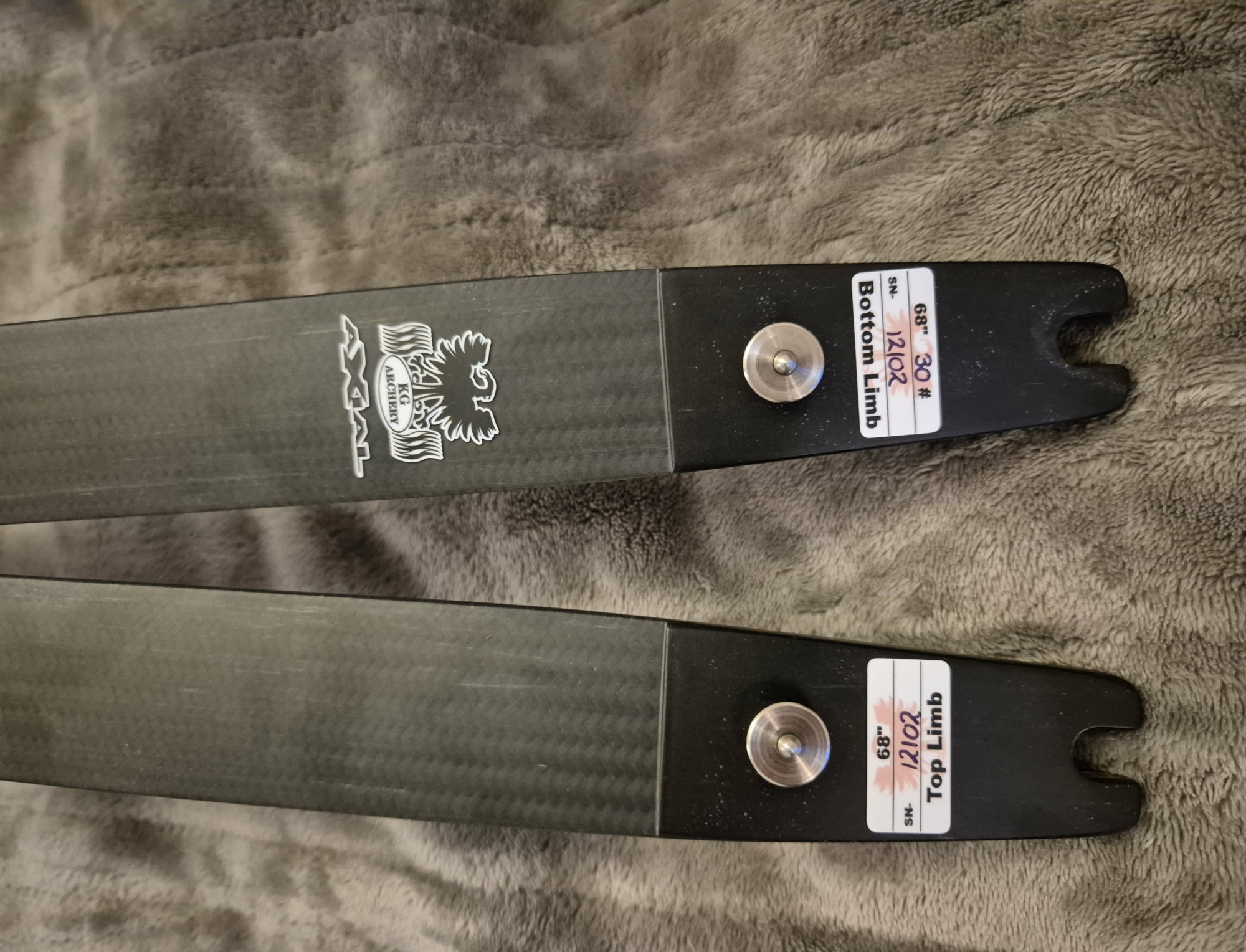 The Limbs are their top of the range Axials, 30lbs medium and in great condition, See Pictures. Probably the smoothest drawing limbs i have ever shot. again suitable for archers who have stregth or fatigue issues in my experience.