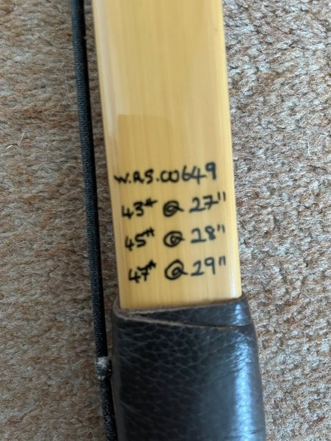 It is 45lbs at 28 ins, so in the mid range making it ideal for both ladies and gents. This right-handed bow is a delight to shoot. It’s a lovely smooth draw and is excellent condition.