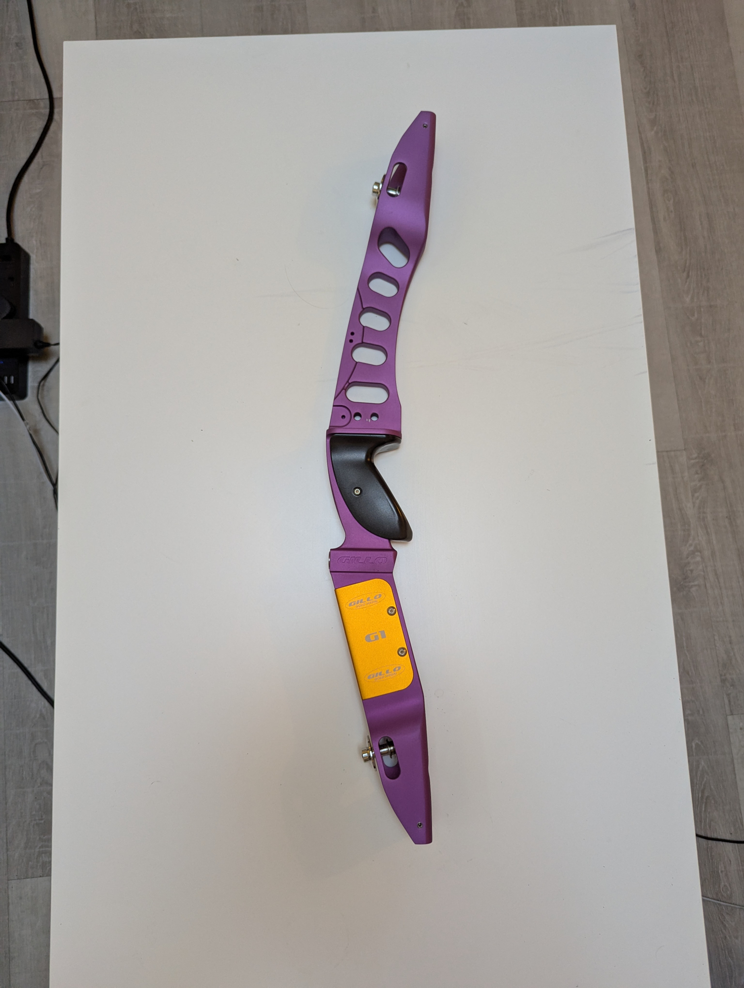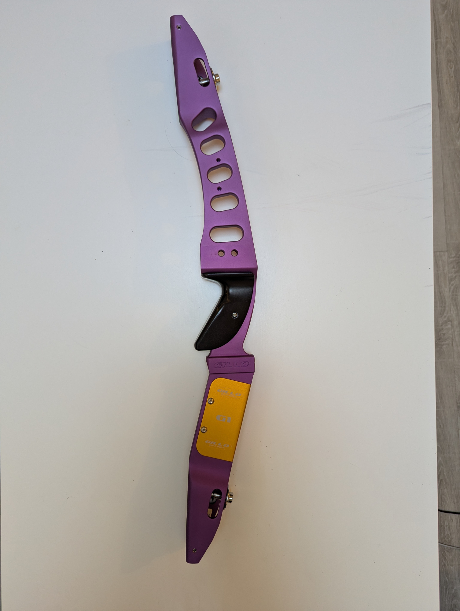 This is a fantastic barebow riser with options for Gillo's integrated weight systems (not included).