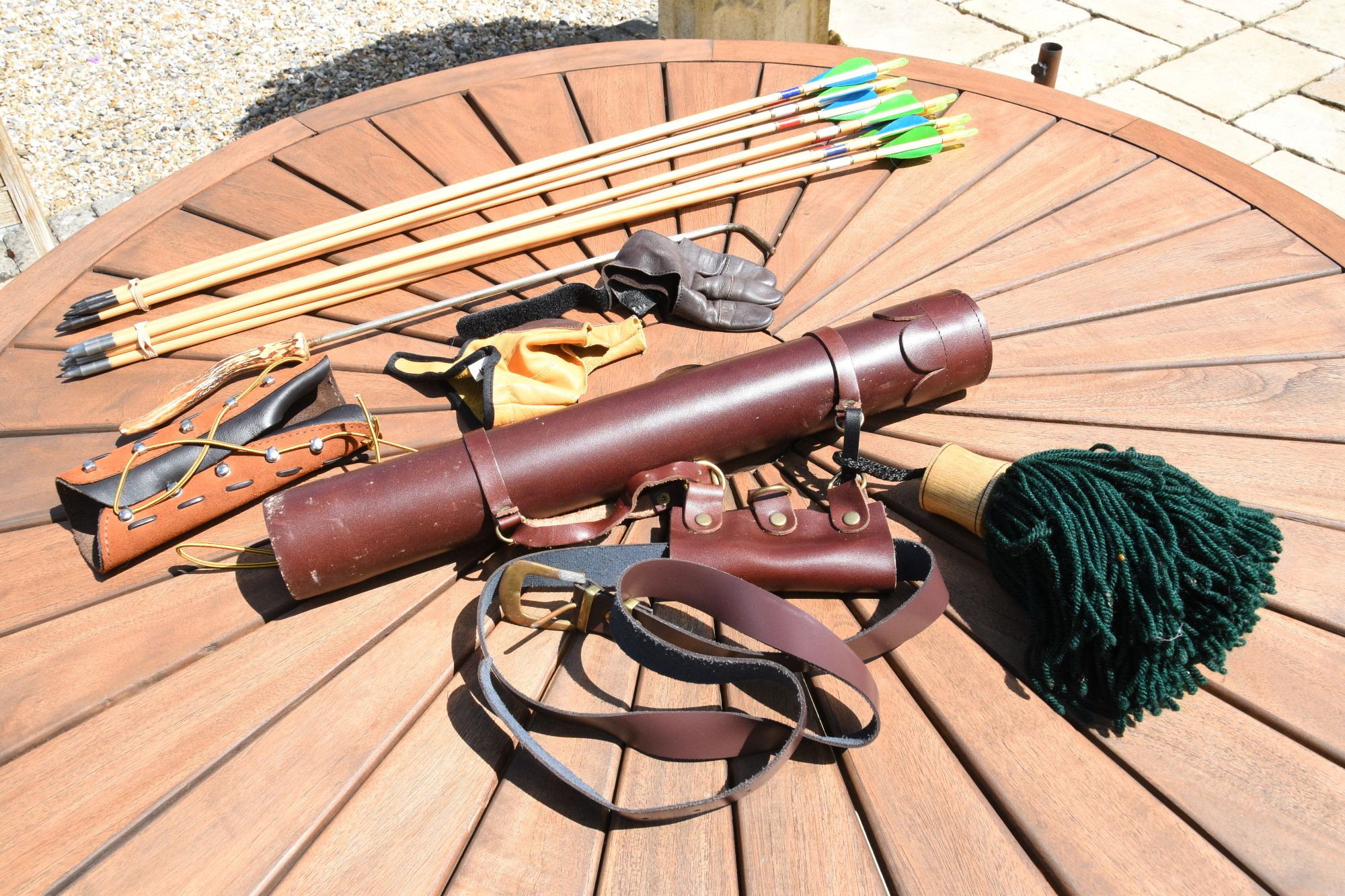 Bickerstaffe Longbow plus 12 arrows arm guard finger guard quiver arrow cleaner stringer and bag.