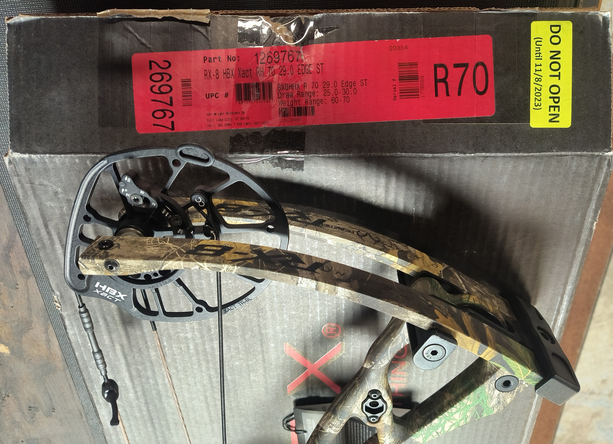 HOYT CARBON RX-8 RH 70# REALTREE EDGE DRAW LENGTH 25-30.