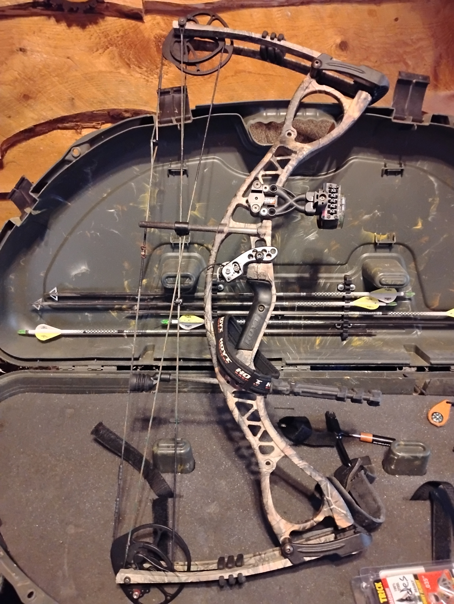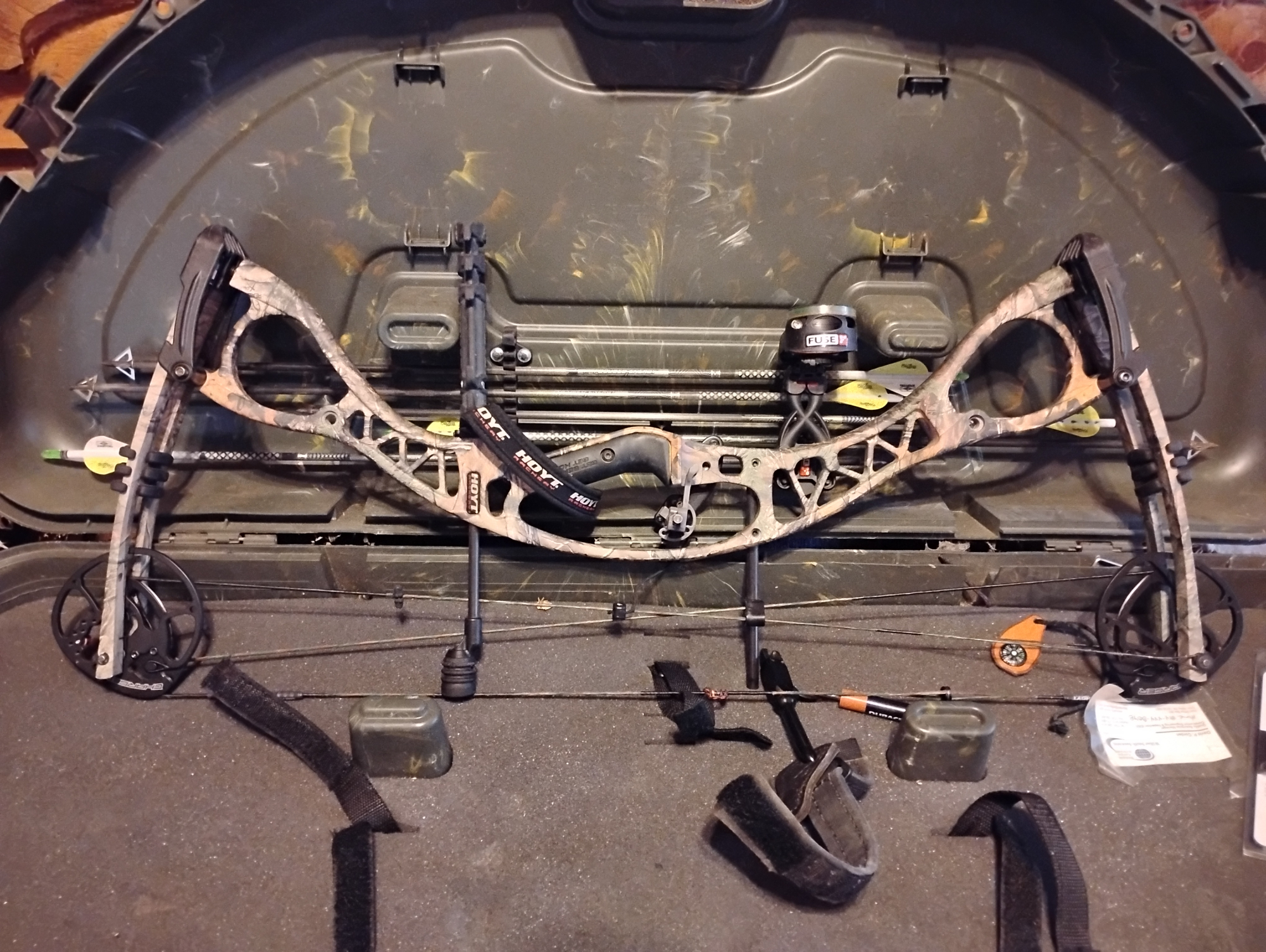 Lightly used compound bow 65 lb draw weight 28 inch draw length, complete setup , includes five pin sight with level, Fall away rest , stabilizer , wrist sling ,wrist release, plus carbon arrows