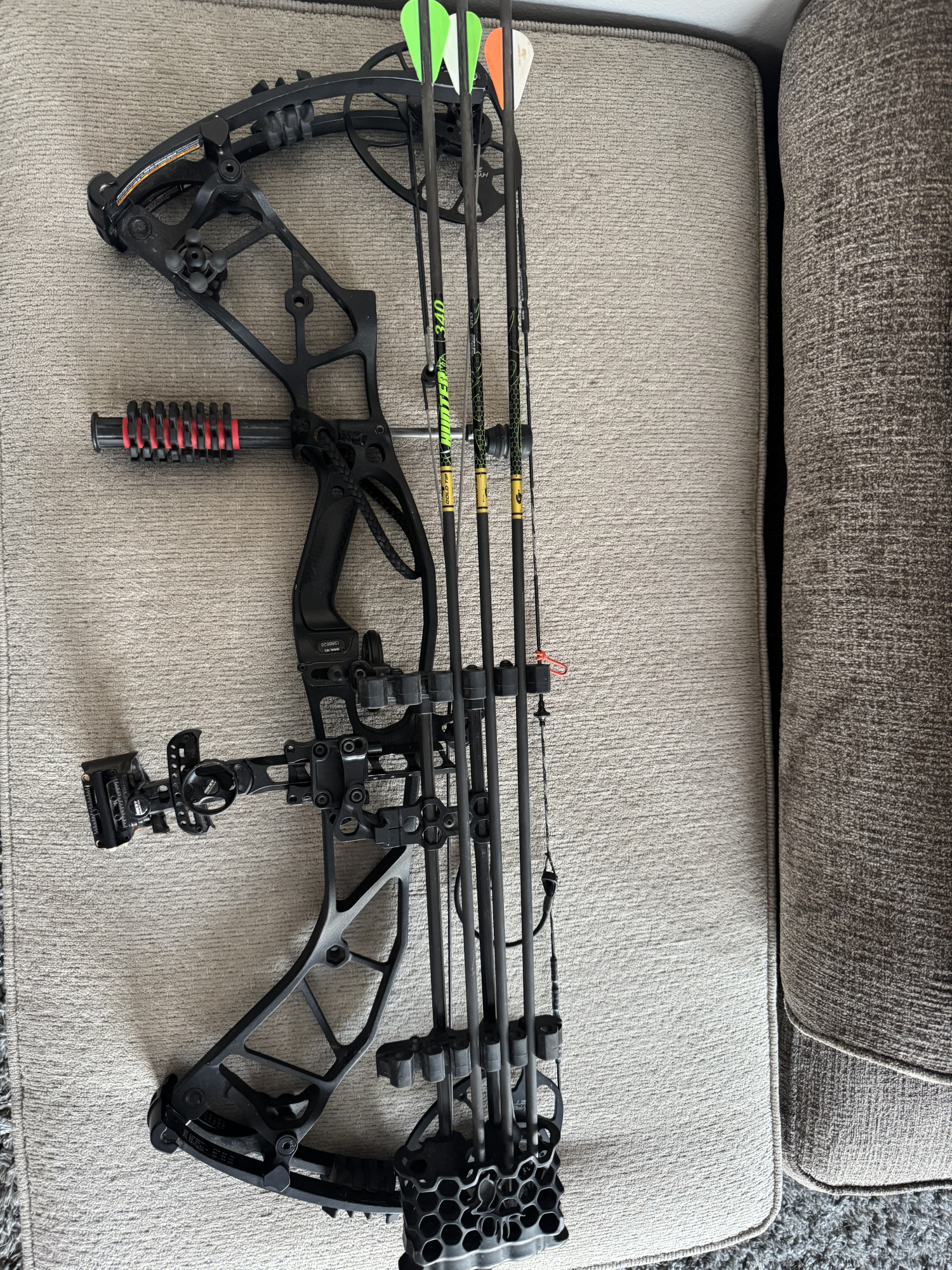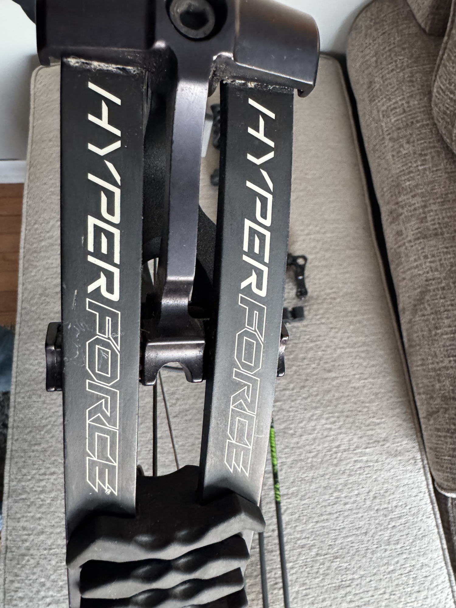 Hoyt Hyperforce. This was its fifth season of use with original strings. Set up for 29in draw length and 60LB draw weight. Draw length can be adjusted to 27-30 inches. Still shoots very well, very quick and accurate. Selling the bow, arrows, and case. I'm located in Central Illinois outside of Peoria.