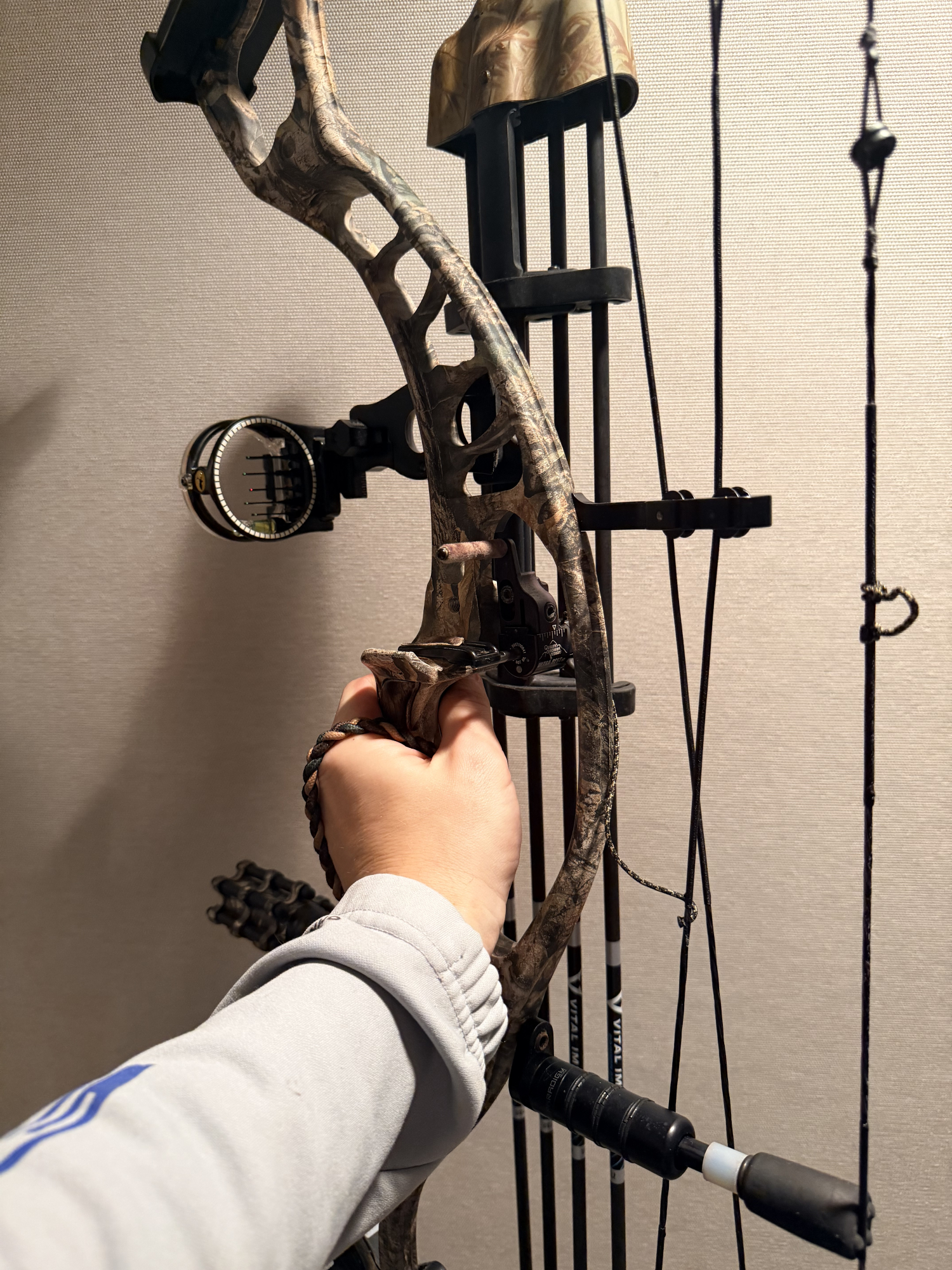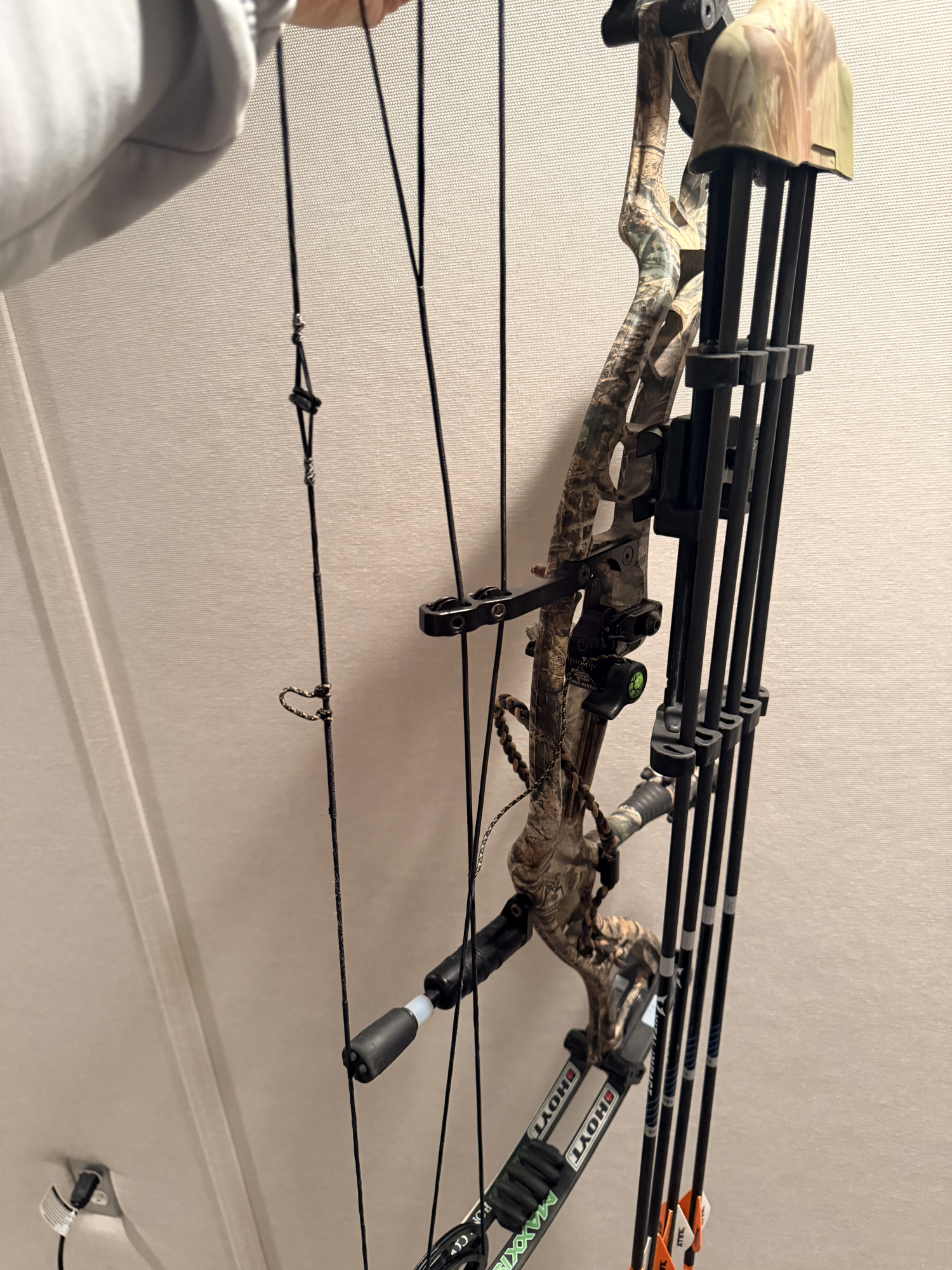 Hoyt Maxxis 31 Bone Collector series. Tru Gold 5 arrow quiver. Tru Gold 5 pin sight. Fuse stabilizer. Restrung just before 2025 hunting season. 26-30 inch and currently set at a 65 pound draw. Zero problems with bow, just upgraded to brand new. $400