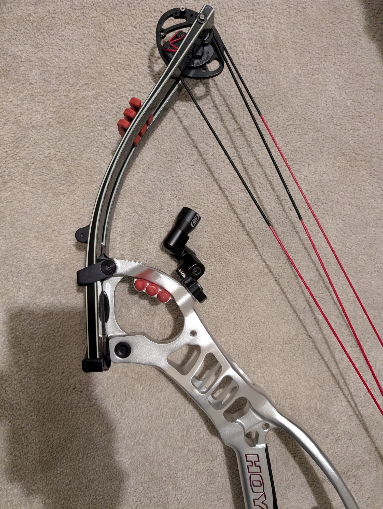 For sale is a Hoyt Podium X Elite in the sought-after Silver Ice (polished silver) finish. This has been a fantastic target bow, used by a female archer at county level, and is well-maintained.