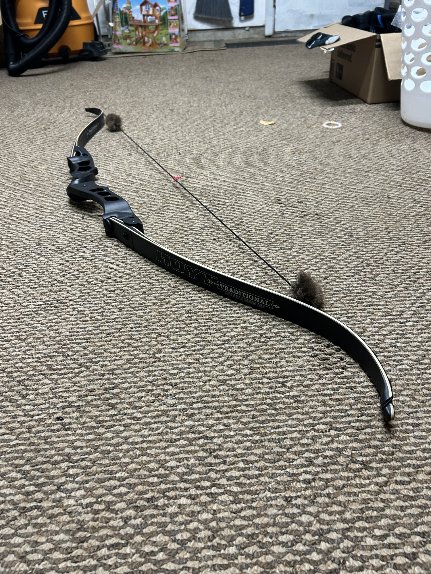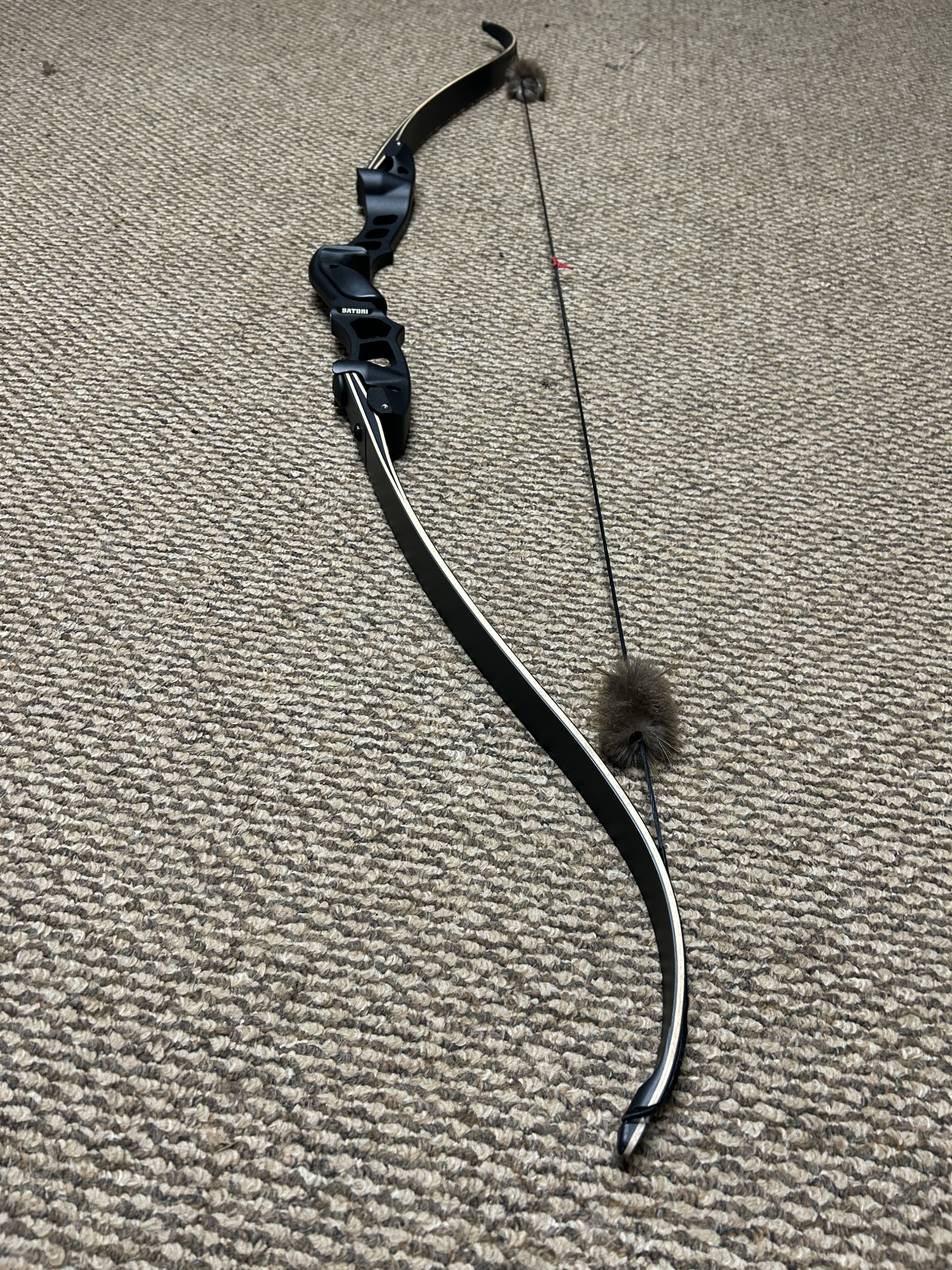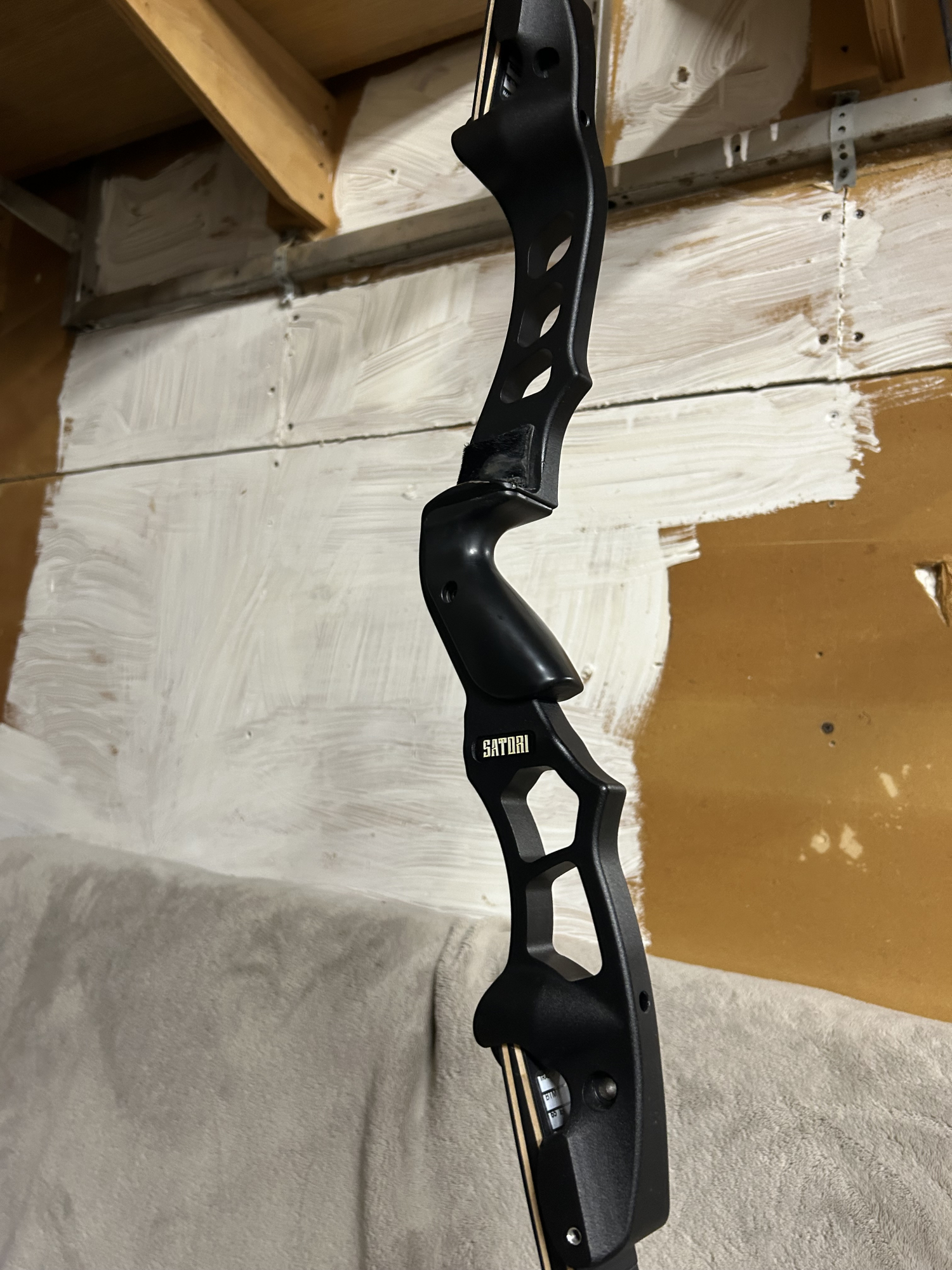 Hoyt Satori ILF Recurve. In good condition. Not even a year old. Blackout 21” riser. Blackout medium limbs. Total length is 64”. 65lb draw weight at 28”.