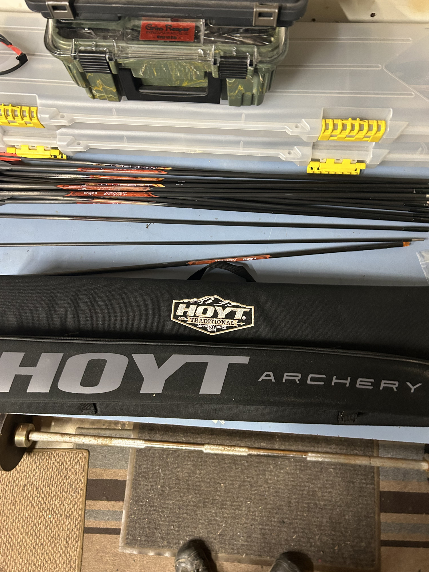 Comes with two finger gloves, finger tab, leather arm guard, finger guard, plunger button, four new strings and Hoyt’s Satori case and pro stringer.