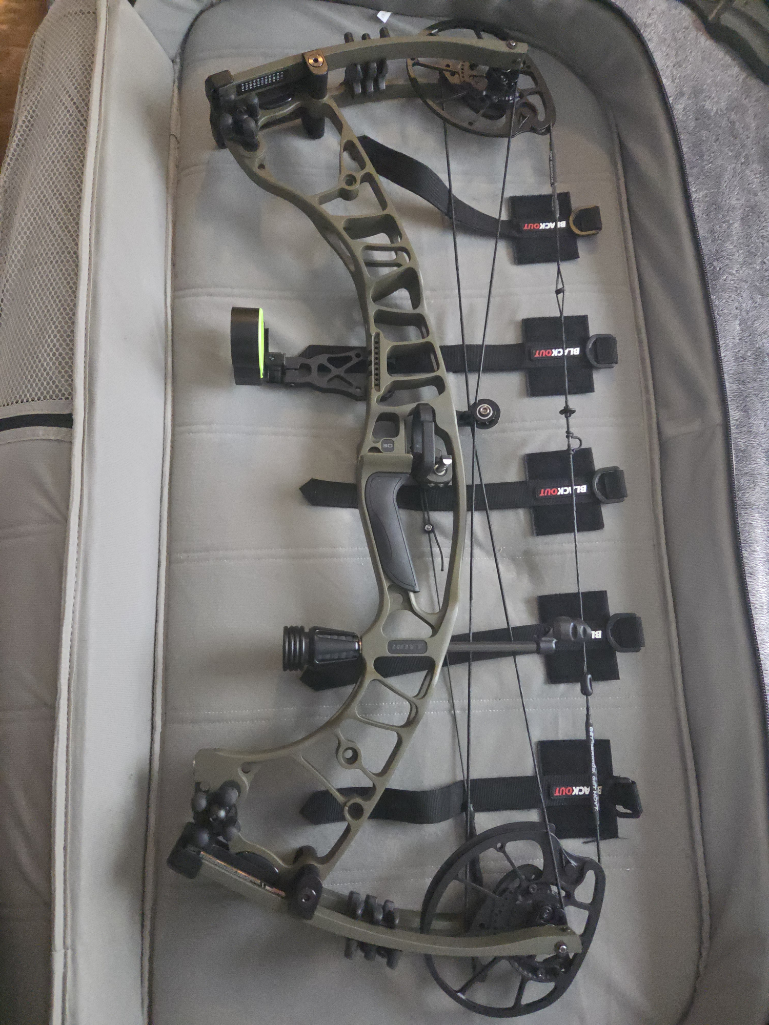 Hoyt Ventum Pro 30. 70-80 lb. Fully set up with Hamskea Flipper Rest. 3 pin Black Gold Sight. Easton Sling and Blackout carry case. Only shot around 30 arrows