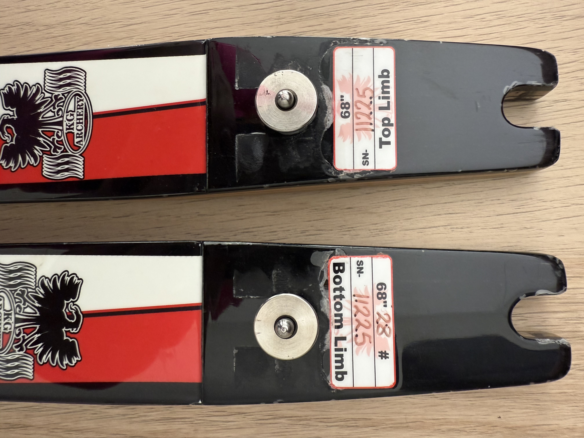 KG Archery NX55 limbs. 28lb medium. Selling as I’ve decided to switch to shorts for 3D. Lovely smooth limbs with a great reputation that are in good used condition. Couple of little blemishes on the lacquer as pictured but still lovely limbs. £195 plus postage.