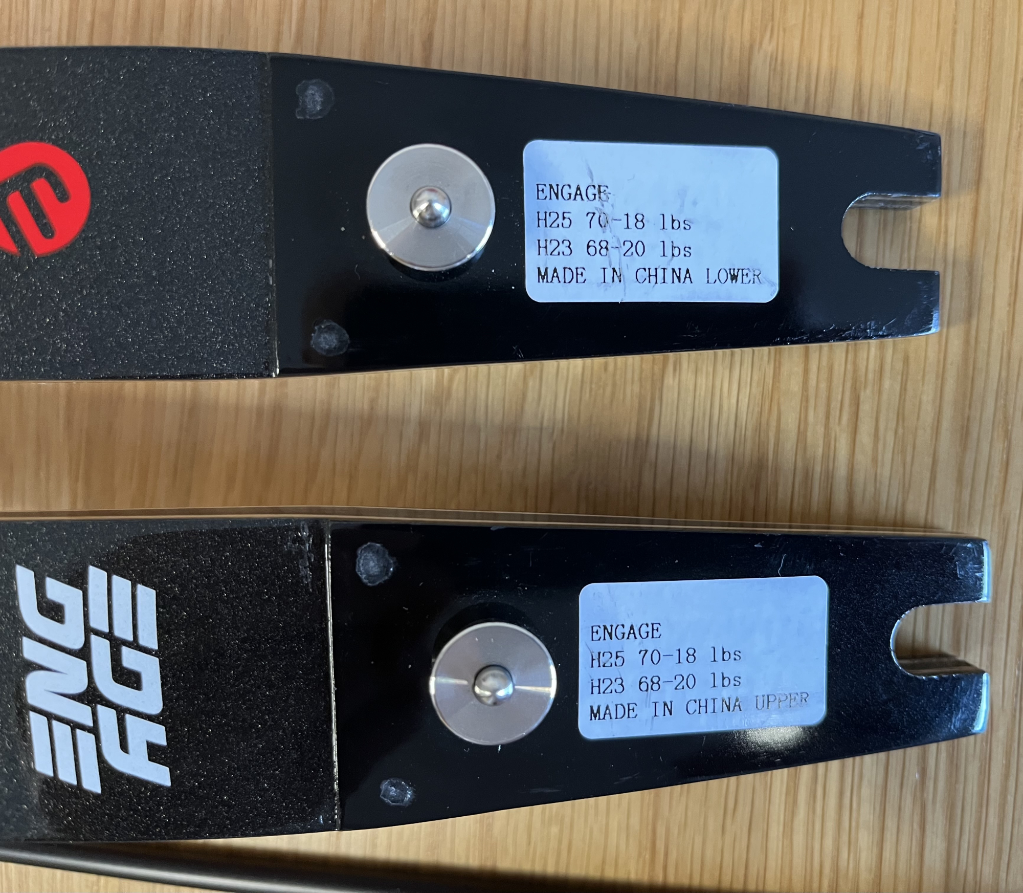 Kinetic Engage limbs H25 70-18LBS, H23 68-20LBS.