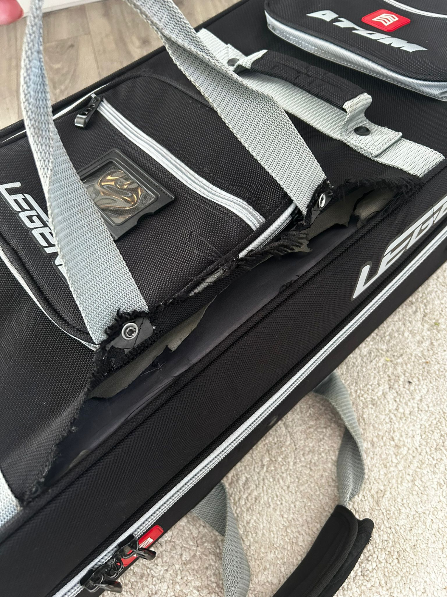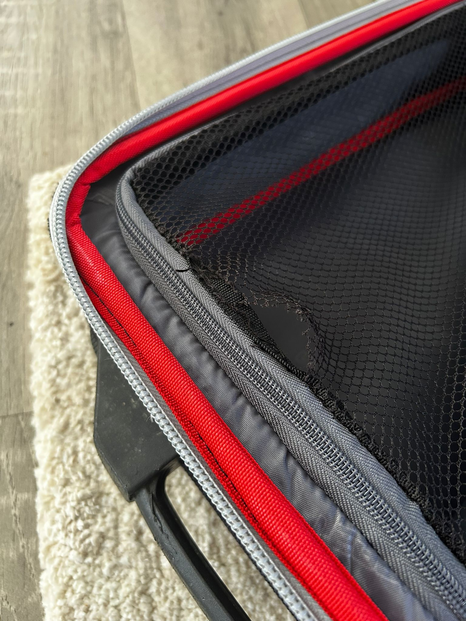 Minor damage to the netting on the smaller compartment shown in Photo.