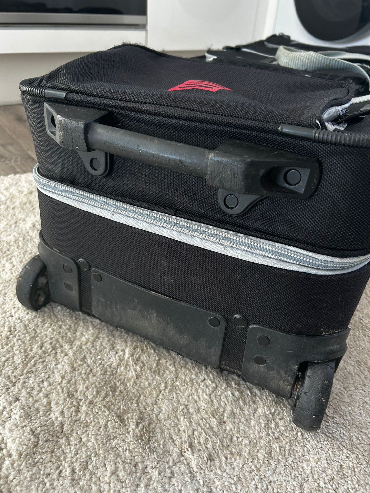 Damage to front, through regular use - as shown in Photo - this is due to the weight baring element of the handle and its regular use. It does not effect the internal use of the case what-so-ever and could probably be repaired.