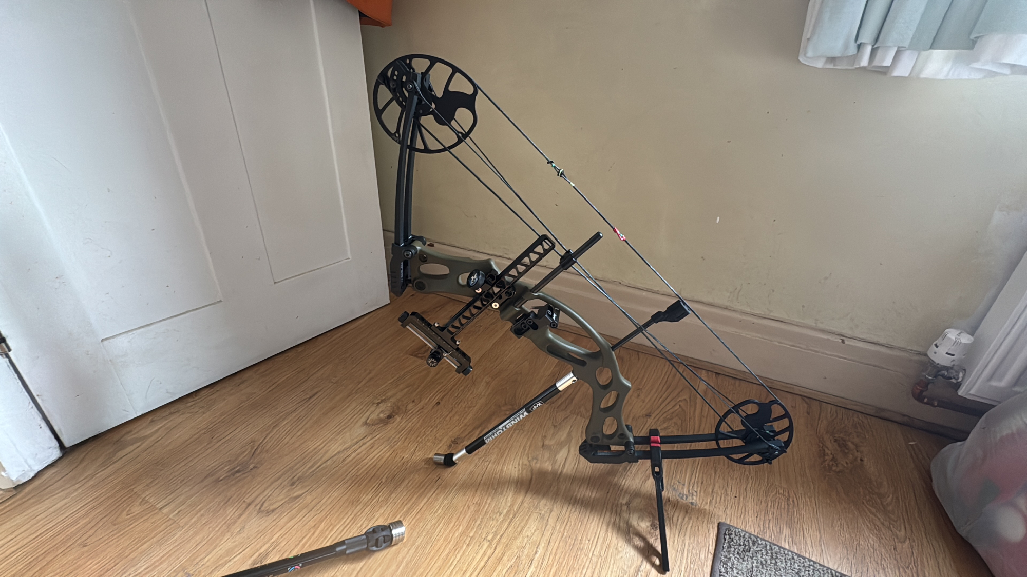 Hoyt Kobalt junior LH, olive green (like new) including stabiliser, sight, stand, bag, quiver, pouch, arrows, release aid and lots more (as seen on pics)