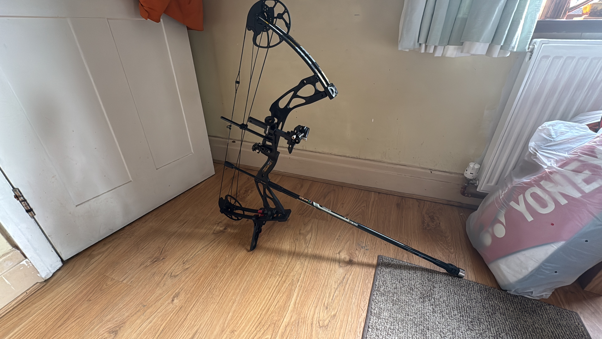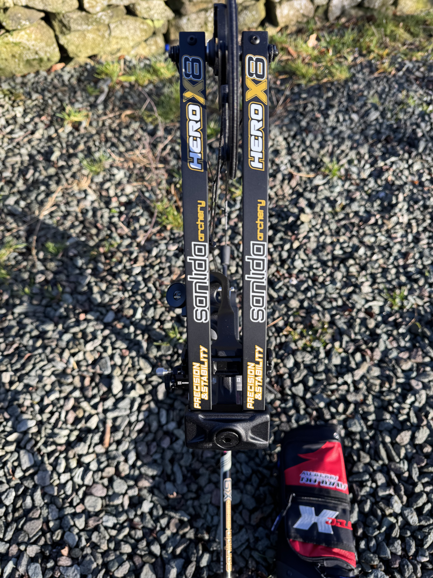 Sanlida Hero X8 RH (like new) bought from Custom Build Archery. Hardly used. With Sanlida scope and long rod, 12 ACC’s, stand, bag, release aid and everything you see on the pictures. Well cared for.