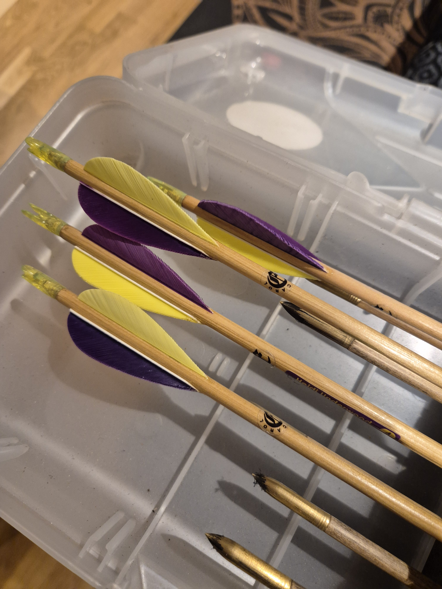 10 wooden arrows fully fletched to match bow. Plus kit to make 12 more. Fully varnished just needs assembling.